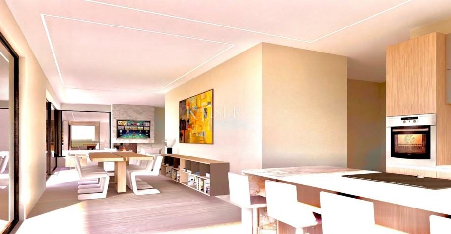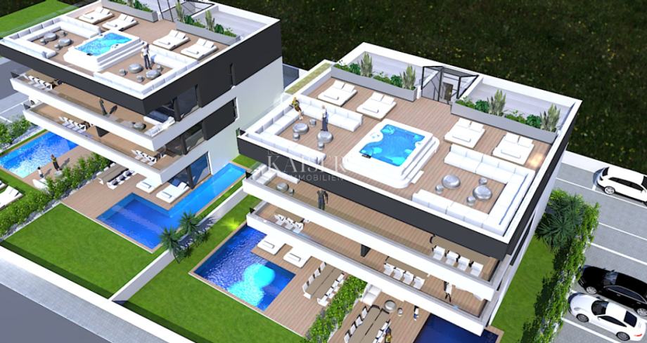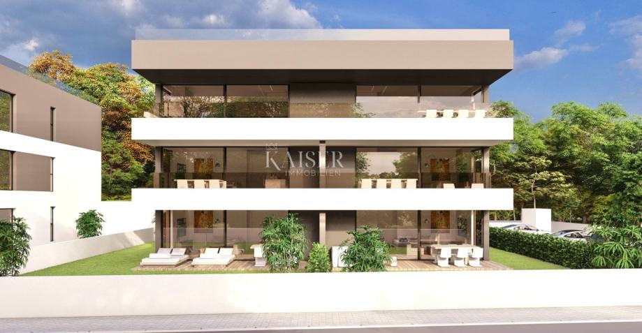 Kaiser Immobilien predstavlja luksuzno stanovanje v pritličju stavbe, v popolnoma novem apartmajskem naselju z dvema stavbama, le nekaj minut vožnje od mesta Poreč. Apartmaji se nahajajo na mirni in priljubljeni lokaciji, v bližini vseh najpotrebnejših vsebin za vaše življenje. Predviden zaključek gradnje stanovanj je 05/2025. Stanovanja so v gradnji, tako da je že mogoče izbrati stanovanje, ki vam najbolj ustreza. Stanovanja so zgrajena zelo kvalitetno in zelo moderno, z veliko steklenimi stenami, široko odprtimi okni in balkoni, ki bodo osvetljevali prostor skozi vse leto. To stanovanje se nahaja v pritličju in obsega dve spalnici, kopalnico, WC za goste, kuhinjo, dnevno sobo in jedilnico, hodnik in garderobo ter pokrito teraso. Stanovanju pripadata dve parkirni mesti in še ena shramba. Stanovanju pripada dvorišče velikosti 100 m2. Stanovanje je opremljeno s talnim ogrevanjem, ki deluje preko toplotnih črpalk Mitsubishi, v spalnicah in dnevni sobi pa so tudi klimatske naprave. Neto velikost stanovanja je 74,5 m2. Oddaljenost od nepremičnine do mesta: Poreč - Letališče Pula, 45 km Poreč - Ljubljana, 162 km Poreč - Dunaj, 544 km Poreč - Praga, 868 km Poreč - München, 565 km Če nameravate začeti novo življenje v Istri , in iščete idealno nepremičnino za vas, nas z zaupanjem kontaktirajte na telefonsko številko 00385 923782803 ali na elektronski naslov: ivana@kaiser-immobilien.hr. Agencijska provizija znaša 3% + DDV.