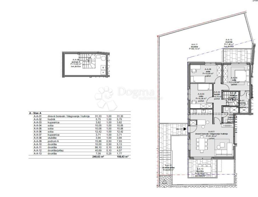 Gospodarske površine (klet): 19,80 m² BRUTO