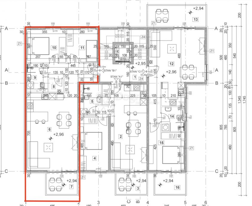 1. Kuhinja, dnevna soba in jedilnica 40,93 m2