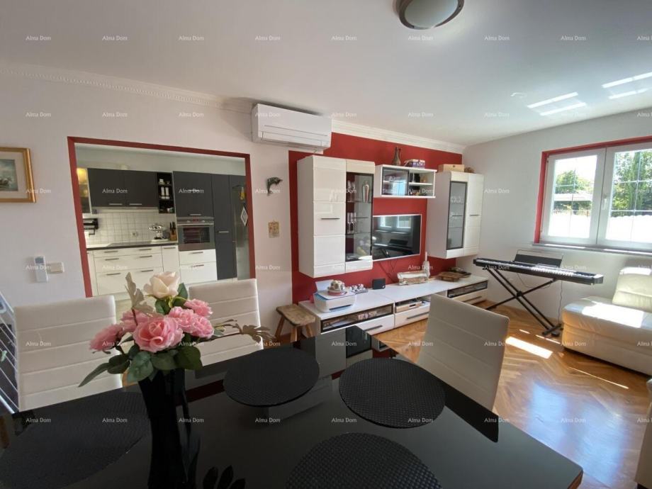 Stanovanje s površino 95 m2 obsega svetlo in zračno dnevno sobo, popolnoma opremljeno kuhinjo, dve spalnici in dve moderno opremljeni kopalnici ter teraso.