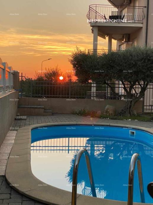Stanovanju pripada 140 m2 vrta z bazenom (7x3). Z lokacije lahko vidite pogled na morje in čudovite sončne zahode.