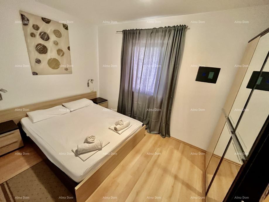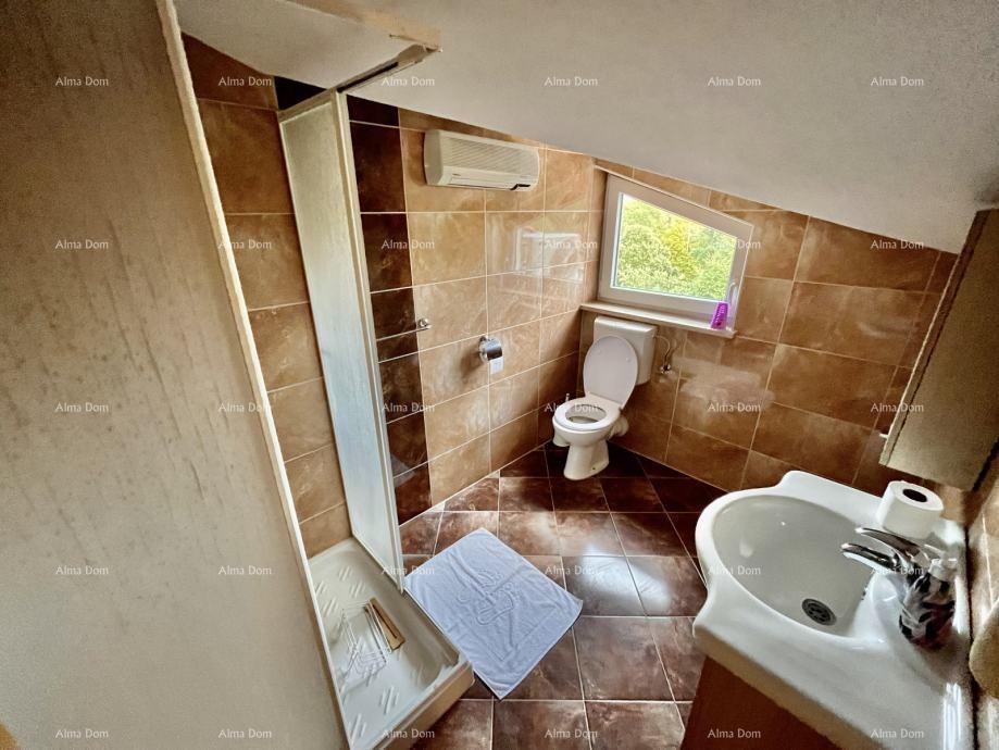 Prodamo trisobno stanovanje, 82m2, v bližini Poreča. Stanovanje se nahaja v stavbi s skupno 9 stanovanji. Apartma obsega v pritličju: 1 spalnica, dnevna soba s kuhinjo, balkon s pogledom na morje, 1 kopalnica z WC-jem na hodniku, v prvem nadstropju je 1 spalnica s pogledom na morje in 1 kopalnica z WC-jem.