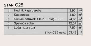 Stanovanje C25, s površino 53,42 m2, se nahaja v stavbi C.