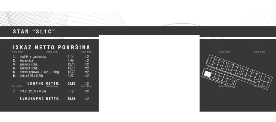 Prodamo stanovanje v novem stanovanjskem kompleksu v Štinjanu. Kompleks sestavlja 19 stanovanjskih dvonadstropnih stavb. Lokacija novega stanovanjskega kompleksa je odlična, le kilometer oddaljen od centra Štinjana in v neposredni bližini osnovne šole, vrtca, mestne plaže Hidrobaza, lekarne, le štiri kilometre od centra Pule in tri kilometre od centra Fažane.