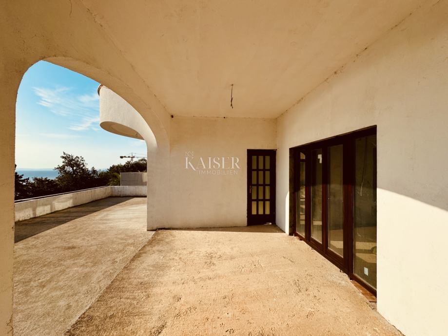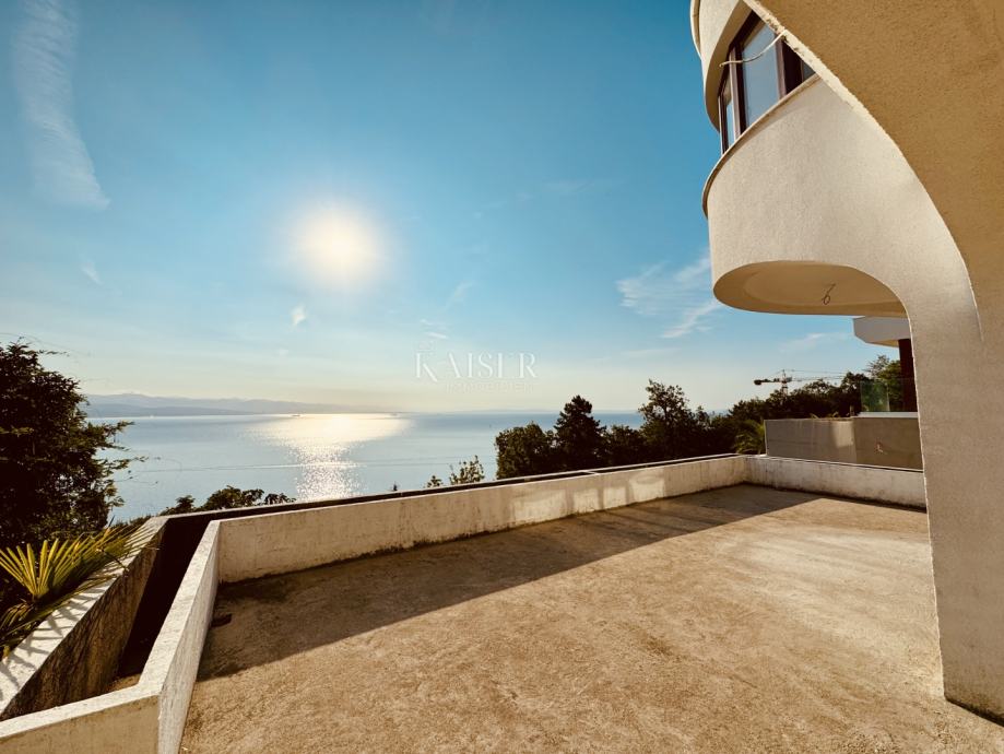 Nepremičninska agencija Kaiser Immobilien iz Opatije iz svoje ponudbe predstavlja nedokončano prostorno stanovanje, ki se nahaja v novejši vili s skupno tremi apartmaji, ki se nahaja na maksimalno mirni lokaciji v neposredni bližini centra Opatije in obale.