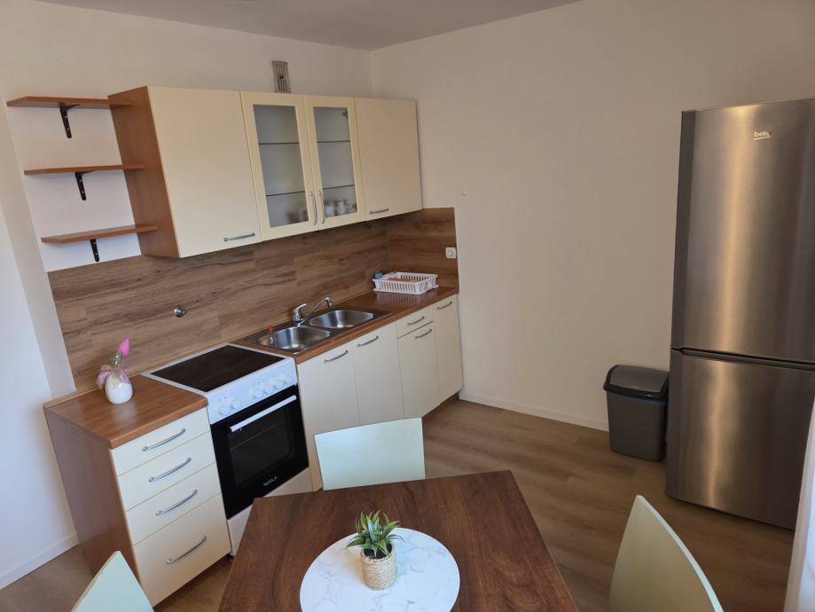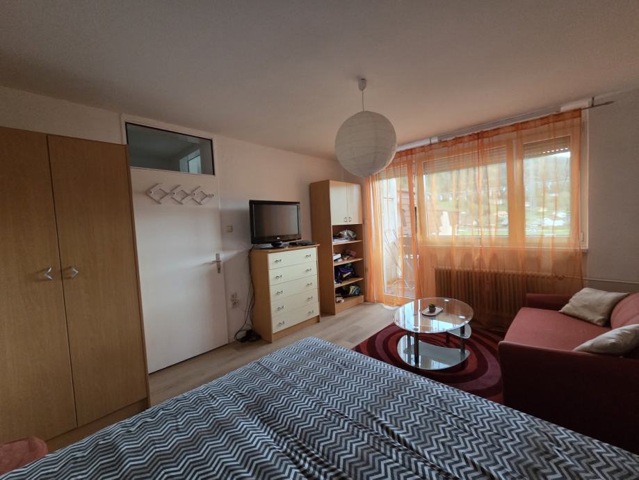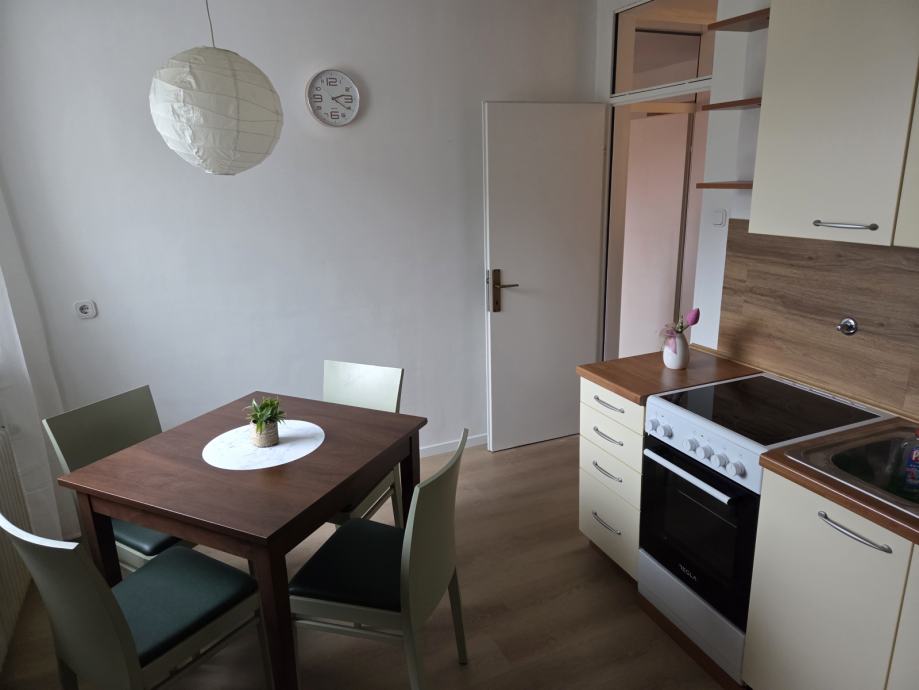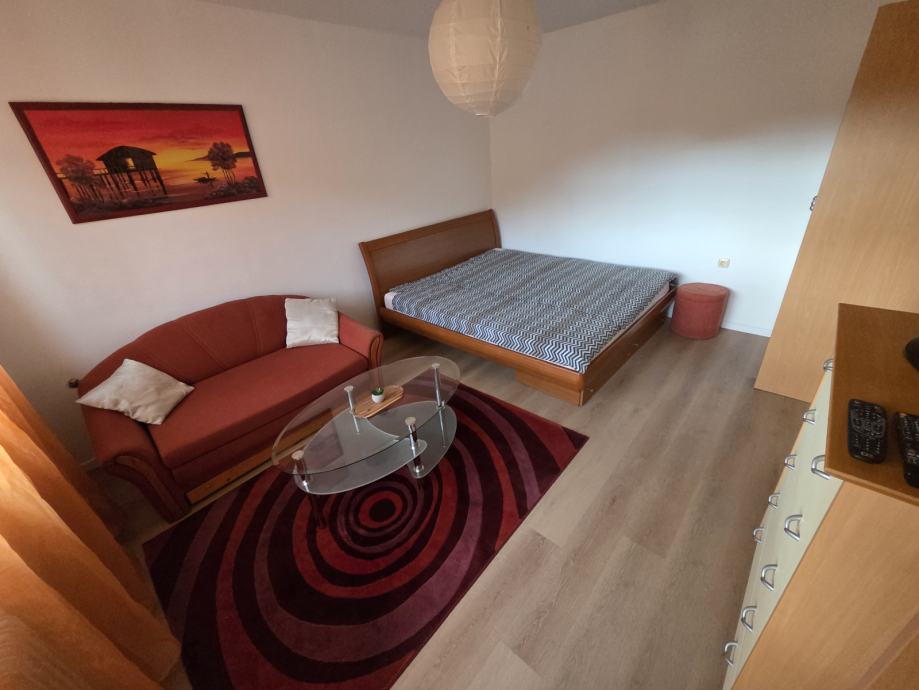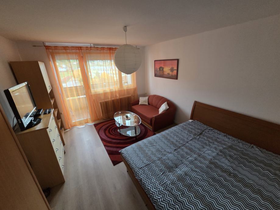 V prijetnem mirnem okolju oddamo 1 sobno opremljeno stanovanje. Je popolnoma opremljeno (internet-wifi, LCD, kabelska, hladilnik, štedilnik, pralni stroj) in pripravljen za sprejem stanovalcev. Obsega predsobo, dnevni prostor, jedilnico s kuhinjo, kopalnico z WC-jem in balkonom. Skupaj 40 m2. Zunaj je veliko parkirišče, zelenica, v neposredni bližini Tuš market, avtobusna postaja, šola, vrtec,...Glede parkiranja ni nikoli problema, vedno se najde prosto mesto. V bloku je večina starejših ljudi, tako da gre za miren in urejen blok.