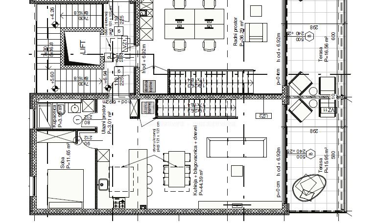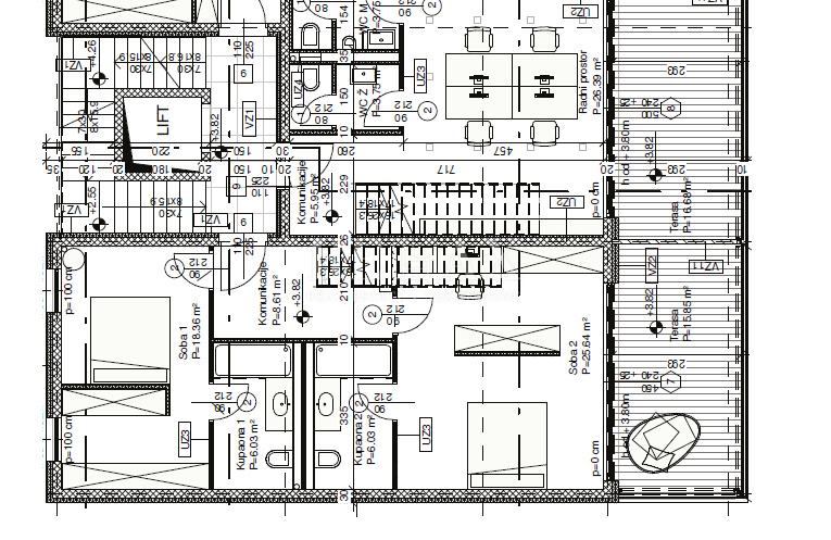 Stavba ima dvigalo, s katerim lahko dosežete obe nadstropji stanovanja.