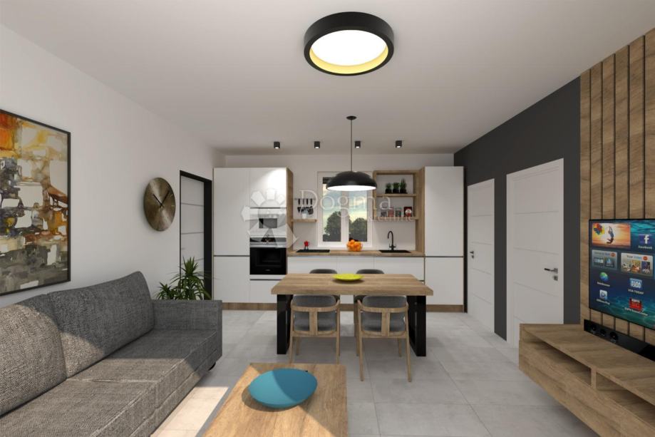 Prodamo stanovanje v gradnji Lokacija: Primestno naselje, le 3 km od centra mesta. Stavba: Manjša stanovanjska stavba s skupno 4 stanovanji, ki zagotavlja mirno in intimno bivalno okolje. Nadstropje: Stanovanje se nahaja v 1. nadstropju. Površina nepremičnine: Skupna površina (tlorisno): 62,51 m² Neto stanovanjska površina: 47,82 m² Shramba: V pritličju stavbe. Garaža: Površina 29,37 m² (obračun po koeficientu: 14,69 m²). Razporeditev prostorov: dnevna soba s kuhinjo. Dve spalnici. Kopalnica. Dodatne informacije: Stanovanje je zasnovano sodobno in je zgrajeno iz kvalitetnih materialov. Investitor ima dolgoletne izkušnje, za vpogled v kvaliteto gradnje pa je možen ogled že izvedenih projektov. Možnosti: Možnost nakupa opremljenega stanovanja po dogovoru. Plačilo: Po fazah gradnje. Za dodatne informacije ali ogled nas kontaktirajte! Filip Crnjac +385 091 600-1216 filip.crnjac@dogma-nekretnine.com
