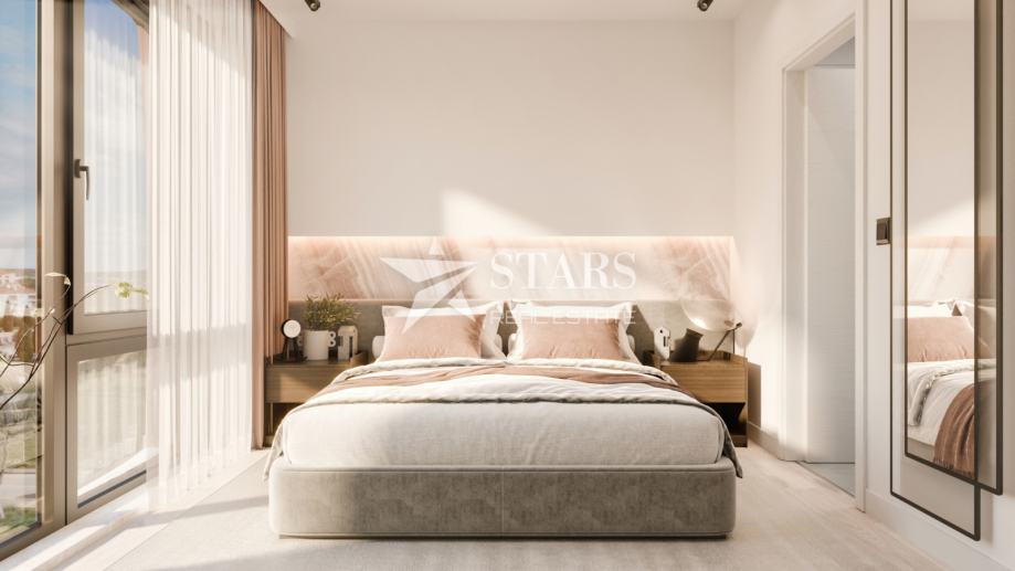 Stanovanje obsega 86,64 m² notranje površine z izvrstno razporeditvijo: tri spalnice, dve kopalnici, velik dnevni prostor s kuhinjo in jedilnico ter izhod na balkon velikosti 26,50 m². Balkon služi kot podaljšek bivalnega prostora in je popoln za obedovanje na prostem, sončenje ali jutranjo kavo z razgledom na morje.