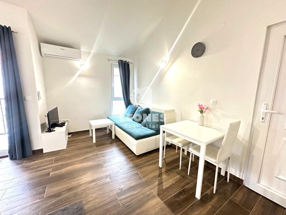 Sestavljen je iz dnevne sobe s kuhinjo in jedilnico, prostorne spalnice, kopalnice in terase s pogledom na morje.