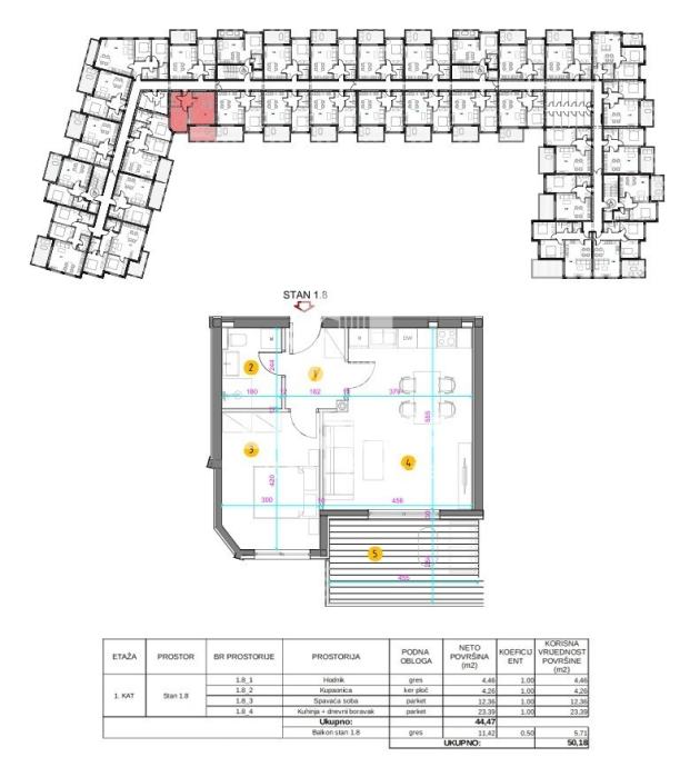 Prodamo stanovanje v prvem nadstropju novogradnje v Umagu. Neto uporabna površina stanovanja znaša 50,13 m2. Sestavljeno je iz dnevne sobe in kuhinje, spalnice, kopalnice in lože. Stanovanju pripada shramba velikosti 3,02 m2 in eno zunanje parkirno mesto.