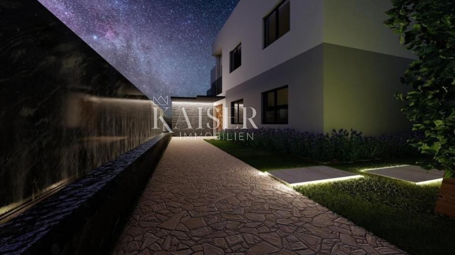 Kaiser Immobilien predstavlja stanovanje v prvem nadstropju luksuzne vile v gradnji v Novi Vasi pri Poreču. Moderna stavba z luksuznimi apartmaji in pogledom na morje bo imela štiri stanovanjske enote. Stanovanje se nahaja v prvem nadstropju stavbe s skupno površino 96,56m2 in je sestavljeno iz predsobe, treh prostornih spalnic, dveh kopalnic in dodatnega WC-ja za goste. Dnevna soba, jedilnica in kuhinja so zasnovane po konceptu odprtega prostora in zagotavljajo prostornost, ki jo dopolnjuje izhod na teraso, ki meri 15,95 m2. Celoten dnevni prostor ima izhod na pokrito teraso z jacuzzijem in panoramskim pogledom na morje. Stanovanje je zgrajeno iz zelo kvalitetnih materialov. Tla so obložena s kamnom, keramiko ali lesom, odvisno od namena. Zunanje pohištvo je alu, troslojno zastekljeno s Thermopan steklom, notranje pohištvo pa je leseno. Za ogrevanje in hlajenje poskrbijo multisplt inverterske klimatske naprave. Pred objektom je pokrito parkirišče, vsakemu stanovanju pripadata dve parkirni mesti. Predviden zaključek gradnje je dvanajsti mesec 2023. Za več informacij in ogled se obrnite na vašega agenta.