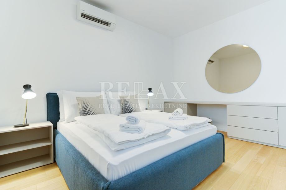 Stanovanje se prodaja v celoti opremljeno s kvalitetnim pohištvom, opremljeno z italijansko keramiko, talnim gretjem, klimo.