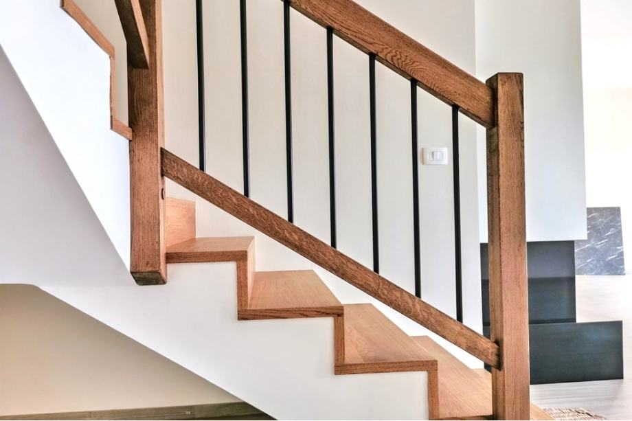 Dnevna soba je s stopnicami povezana s prvim nadstropjem površine 91m2, kjer se nahajajo tri spalnice, kopalnica, utility in balkon.