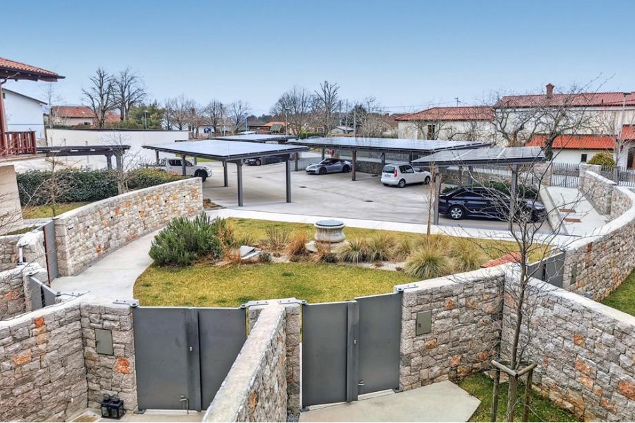 Vstop v kraško klet površine 19m2 je ob hiši iz zadnjega atrija, stanovanjskemu objektu pripada 282m2 zemljišča, skupaj s tremi nadkritimi lastniškimi parkirnimi mesti.