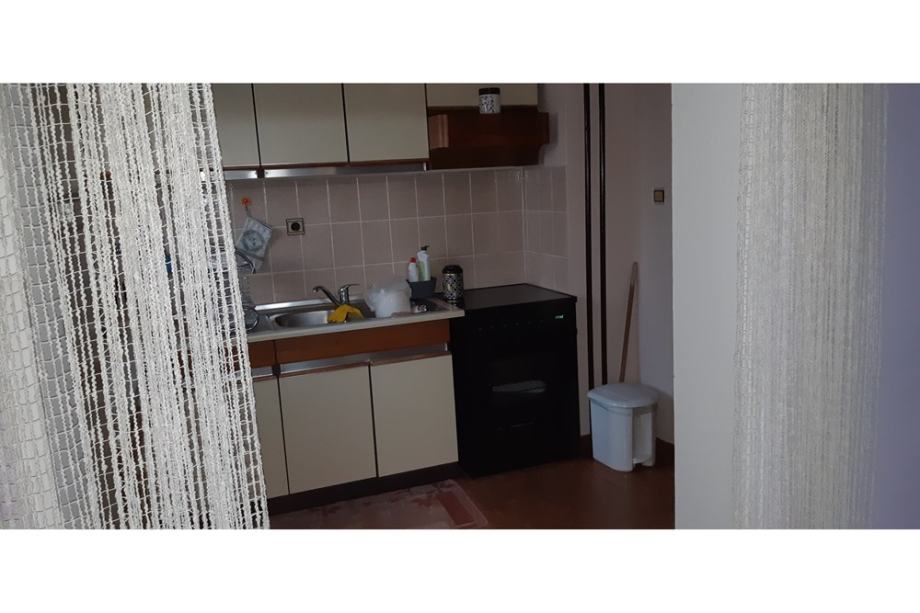 pritličje, kjer se nahajajo kuhinja in jedilnica, dnevna soba z izhodom na teraso in po zunanjih stopnicah na vrt, kopalnica, spalnica, soba, hodnik z izhodom iz hiše,