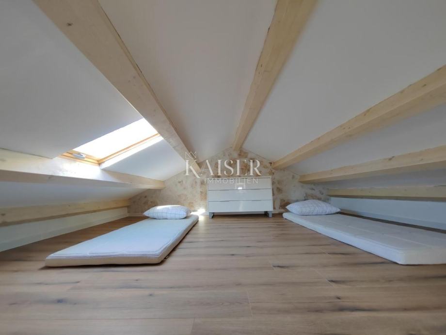 Kaiser Immobilien predstavlja popolnoma prenovljeno istrsko kamnito hišo v Galižani. Nepremičnina se nahaja na odlični lokaciji v bližini vseh potrebščin, v hoje pa je dostopna šola, vrtec, trgovine in avtobusna postaja. Nepremičnina je sestavljena iz dveh hiš in vrta 231m2. Večja hiša je v celoti obnovljena in takoj vseljiva, druga manjša hiša pa ima 30m2 in je potrebna obnove ter se lahko preuredi v dodaten bivalni prostor. Narejena je bila popolnoma nova elektro in vodovodna inštalacija ter priključek na kanalizacijo. V pritličju večje hiše je kuhinja, dnevna soba, wc in stopnišče ter izhod na teraso. V prvem nadstropju sta kopalnica in spalnica, v mansardi pa še ena spalnica. Pokrita zunanja terasa meri 25m2, dvorišče pa je v celoti ograjeno. Na vrtu so zasajena različna sadna drevesa in zelišča, zgrajen je montažni bazen in zunanji žar, postavljen je tudi solarni tuš. Na vrtu je tudi manjša shramba. Parkirišče je brezplačno na javnem območju v bližini. Hiša se uporablja za turistični najem. Razdalja od nepremičnine: München - 594km LJUBLJANA - 193km Rijeka - 99km Rovinj - 28km pula letališče - 16km vodjan - 3,7km fazana - 5,8km morje - 5,8km trgovino - 200m za vsa vprašanja: Dvočo 240 WhatsApp, Viber
