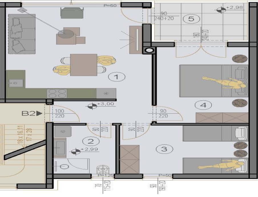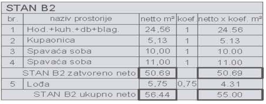 Stan ima neto površinu od 55 m², a sastoji se od: