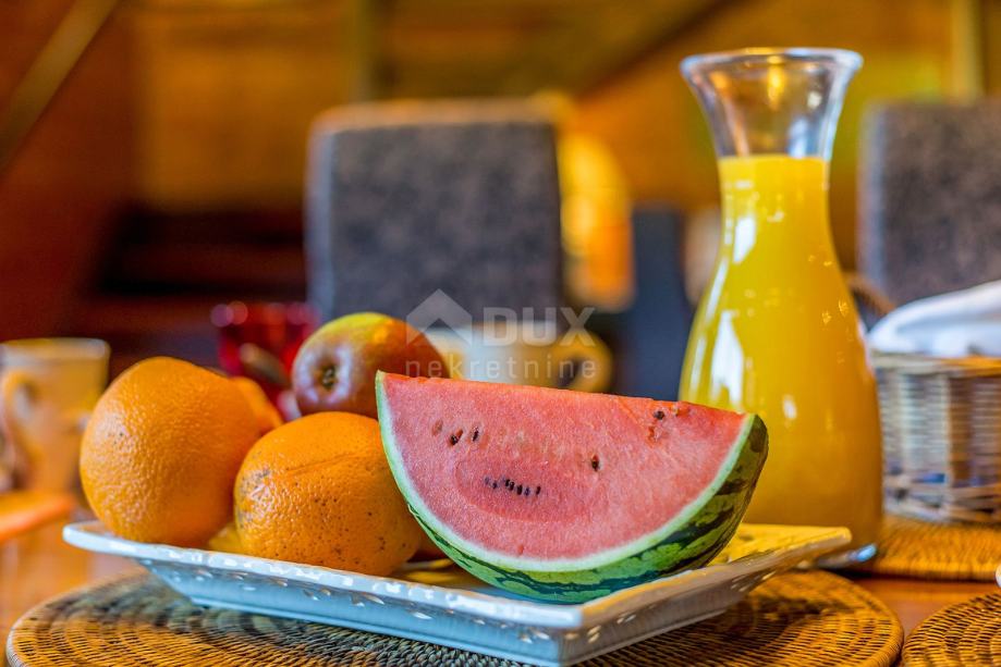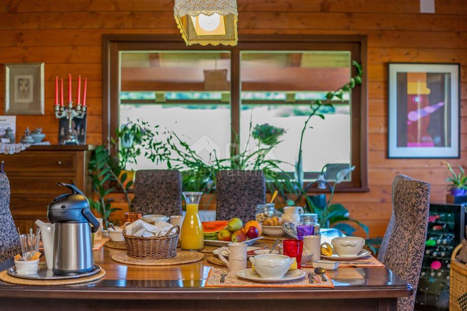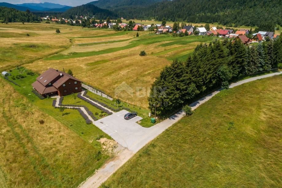 Mrkopalj je eno najstarejših goranskih naselij, katerega dolga in burna zgodovina beleži leta razvoja in kriz, uspehov in propadanja. Na tem goratem območju se je razvil zimski turizem, kar ni presenetljivo, če upoštevamo, da je Mrkopalj zibelka hrvaškega smučanja, kjer je bilo prvo organizirano smučarsko tekmovanje že davnega leta 1913, kmalu zatem pa leta 1934 je bila zgrajena prva skakalnica, ki je gostila mednarodno tekmovanje, skoki. Veliko bogastvo Občine Mrkopalj so zagotovo ljudje, ki so že stoletja vajeni težkih življenjskih razmer tukaj. Razvili so redko videno gostoljubje in prisrčnost, ki se je iz želje po pomoči naključnemu popotniku spremenila v posebno turistično prednost, ki se kaže predvsem v spontanosti, s katero Mrkopaljčani sprejemajo svoje goste. Gorski kotar - oddamo hišo s 6 sobami. Samostojna hiša, sestavljena iz prvega nadstropja in pritličja. V nadstropju je 6 velikih, popolnoma opremljenih sob, vsaka s svojo kopalnico. Zgoraj je tudi savna. V pritličju je velika dnevna soba urejena v gorskem stilu, ki obsega kamin, jedilnico, kuhinjo, delovno sobo in kopalnico z dvema straniščema. Objekt ima velik vrt 1600 m2 z več parkirnimi mesti. Med hišo in parkiriščem poleti na vzhodni strani prevladuje sivka, na zahodni strani pa je vrt. Hiša ima nepokrito teraso z jacuzzijem velikosti cca 40 m2 in pokrito 30 m2, ki je ves dan v senci. Možen je tudi nakup hiše kot utečeno podjetje. Spoštovane stranke, agencijska provizija se obračunava v skladu s Splošnimi pogoji poslovanja: www.dux-nekretnine.hr/opci-uvjeti-poslovanja