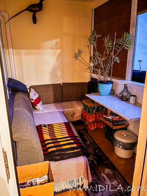 jedilnico od koder je izhod na balkon in dnevna soba. Iz dnevne sobe je vhod na hodnik (drsna vrata) iz katerega