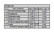Stan S2, površine 56,31 m2 (neto površina 54,66 m2), se nahaja v 1. nadstropju zgradbe 6.