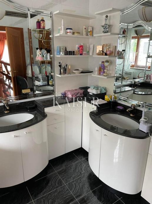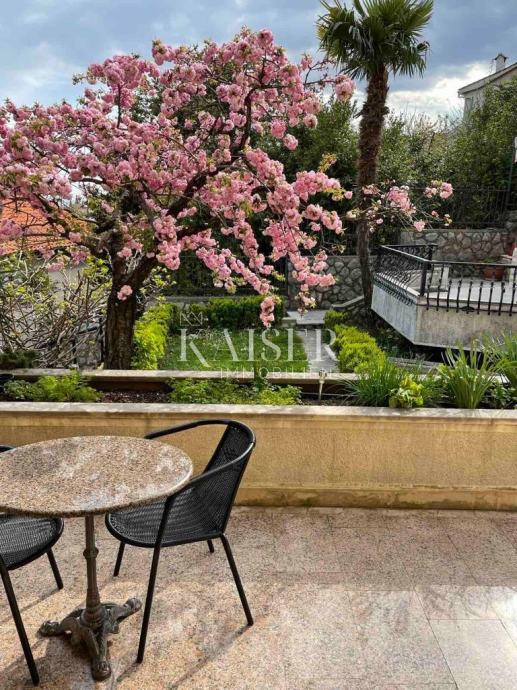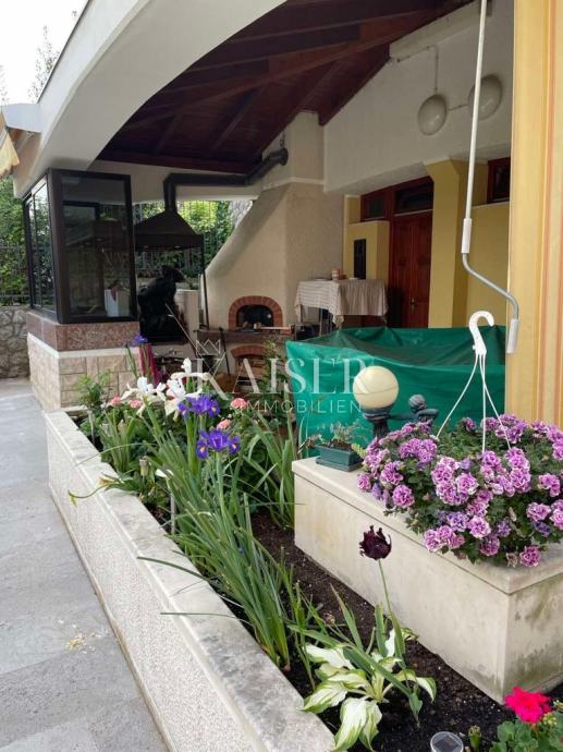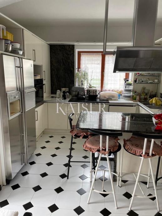 Kaiser Immobilien predstavlja izjemno kvalitetno zgrajeno družinsko vilo na zelo atraktivni lokaciji v naselju Volosko, le 200 metrov zračne črte od obale. Bivalna površina vile je 280 m2 in obsega pritličje, pritličje in nadstropje. V pritličju je velik prostor za druženje, sanitarije in savna. Glavni vhod v vilo se nahaja v visokem pritličju z verando, predsobo, kuhinjo, jedilnico, dnevno sobo, straniščem, kopalnico in pralnico. Impresivno stopnišče iz masivnega granita nas vodi v prvo nadstropje s 4 spalnicami, straniščem in kopalnico. Vse etaže vile imajo velike balkone in terase s čudovitim pogledom na morje. Pri gradnji vile so bili uporabljeni najbolj ekskluzivni materiali in oprema tuje provenience. Vila ima tudi garažo za 2 avtomobila in odprto konobo s kaminom in žarom. Vila je opremljena s centralno kurjavo na olje in sončnimi kolektorji.