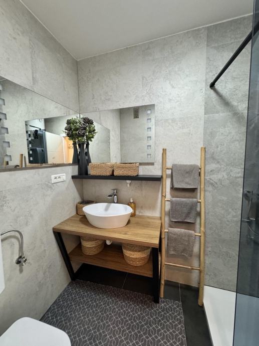 Potpuno je renoviran 2023.godine, kupatilo, odvodi, stolarija, sav je namještaj rađen po mjeri, u spavaćoj sobi ima walk in ormar.