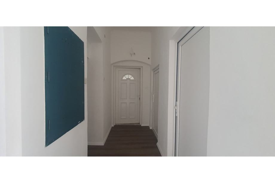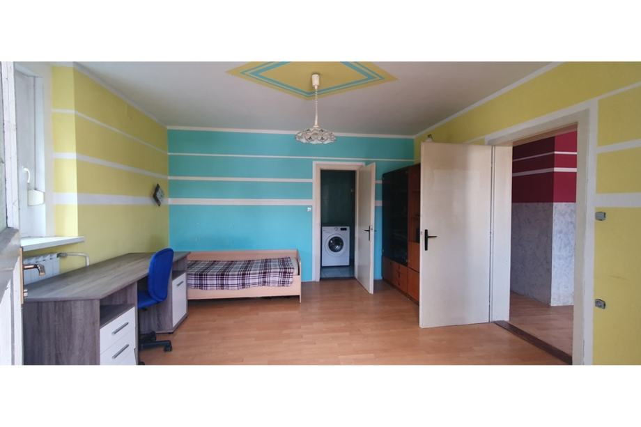 Razporeditev prostorov: ob vhodu v stanovanje je kuhinja z jedilnico, od koder si sledi večja soba, (lahko je dnevna soba), del te sobe je pregrajen, da se pridobi 1 manjša soba( otroška soba), z dnevne sobe naprej se nahajata še spalnica in kopalnica z wc-jem.