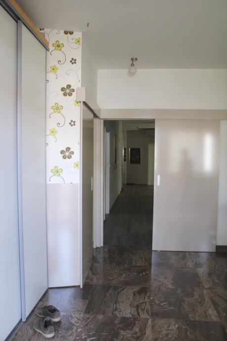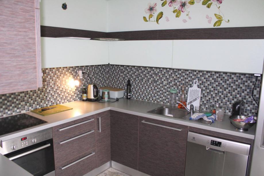 Talne obloge v stanovanju so v parketu, vinilu, keramiki, v kuhinji pa v kamnu.