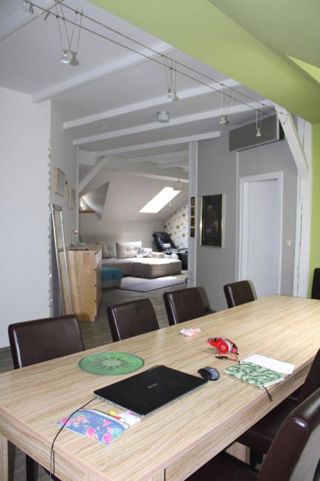 tega je 5 sobno stanovanje v mansardi veliko cca. 280 m 2 in je zelo prostorno z veliko svetlobe, poslovni del v