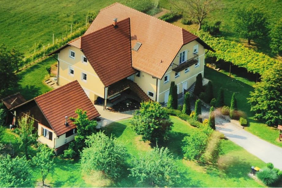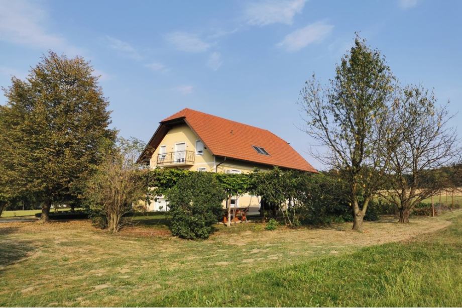 Na enkratni lokaciji, na odprtem in samem na Humu pri Ormožu prodamo sijajno, zares prostorno in udobno hišo etažnosti K+VP+N, skupne površine 504,10 m2, zgrajene leta 2005. Hiša z ohišnico in pripadajočim kmetijskim zemljiščem stoji na skupno 13.836 m2 delno stavbnega (cca 1.162 m2), večino pa kmetijskega zemljišča.