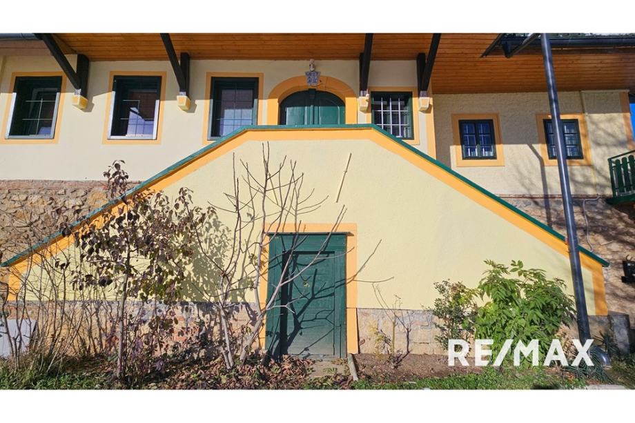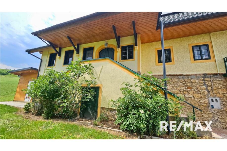 Hiša je podkletena z veliko velbano vinsko kletjo.