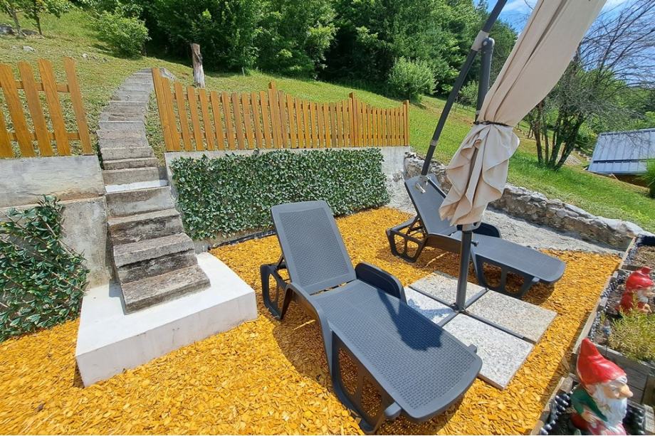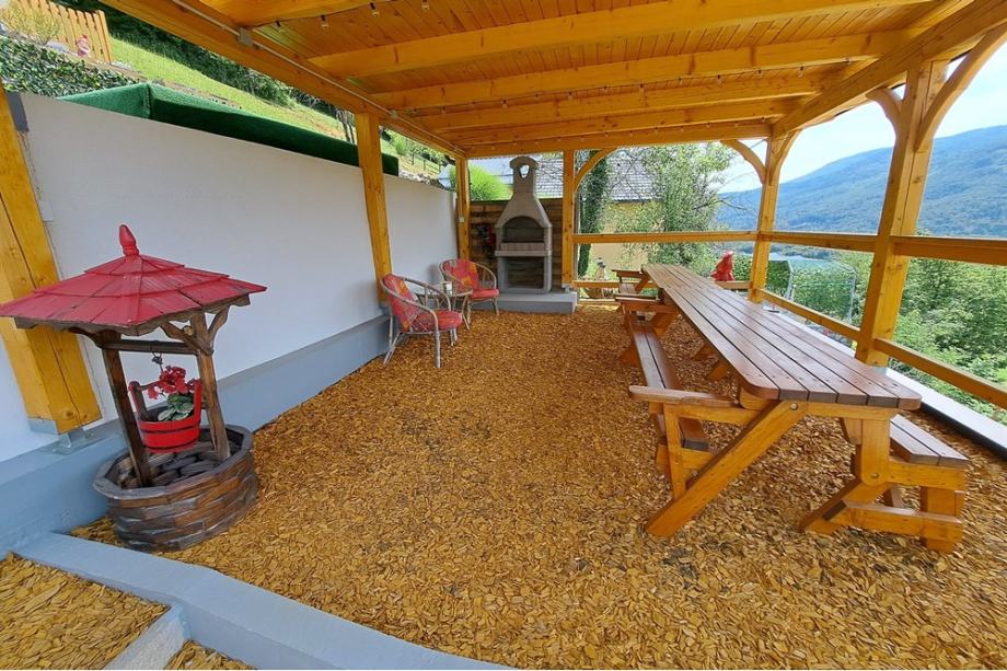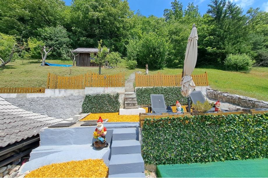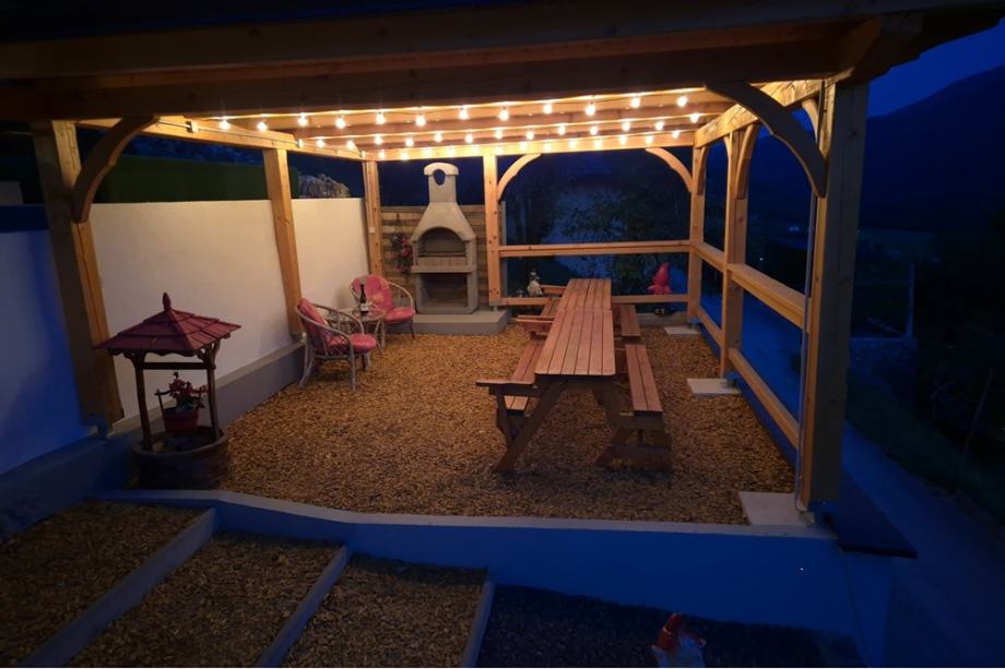 Nad zidanico se nahaja manjša lesena vrtna lopa za spravilo orodja. Ob zidanici se nahaja montažno grajen lesen nadstrešek s kaminom in čudovitim razgledom na dolino reke Krke in Kočevske gozdove.