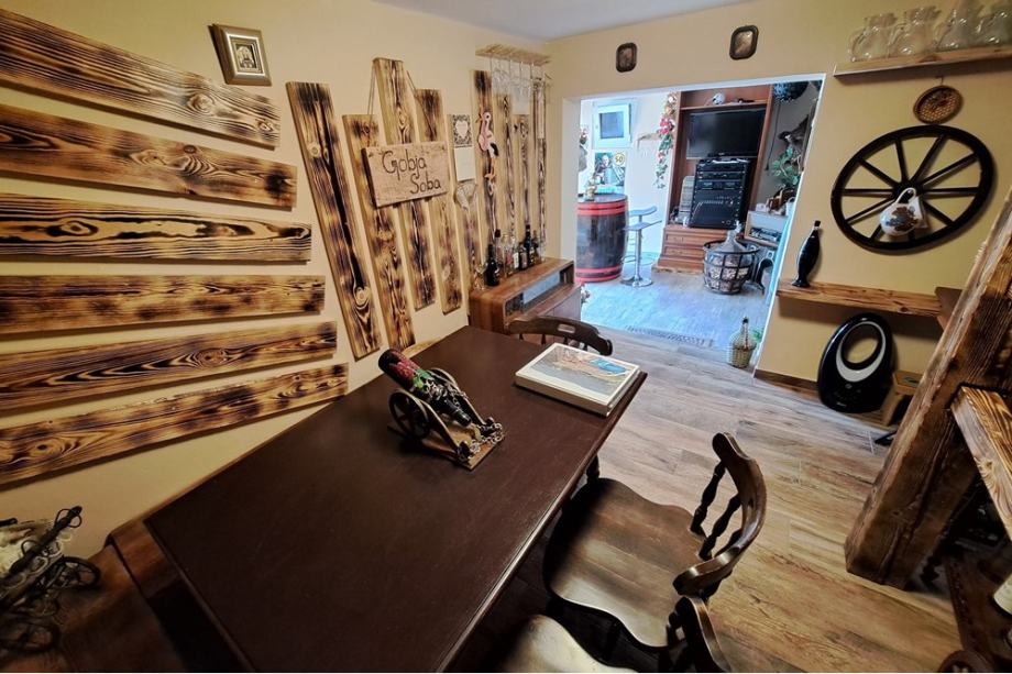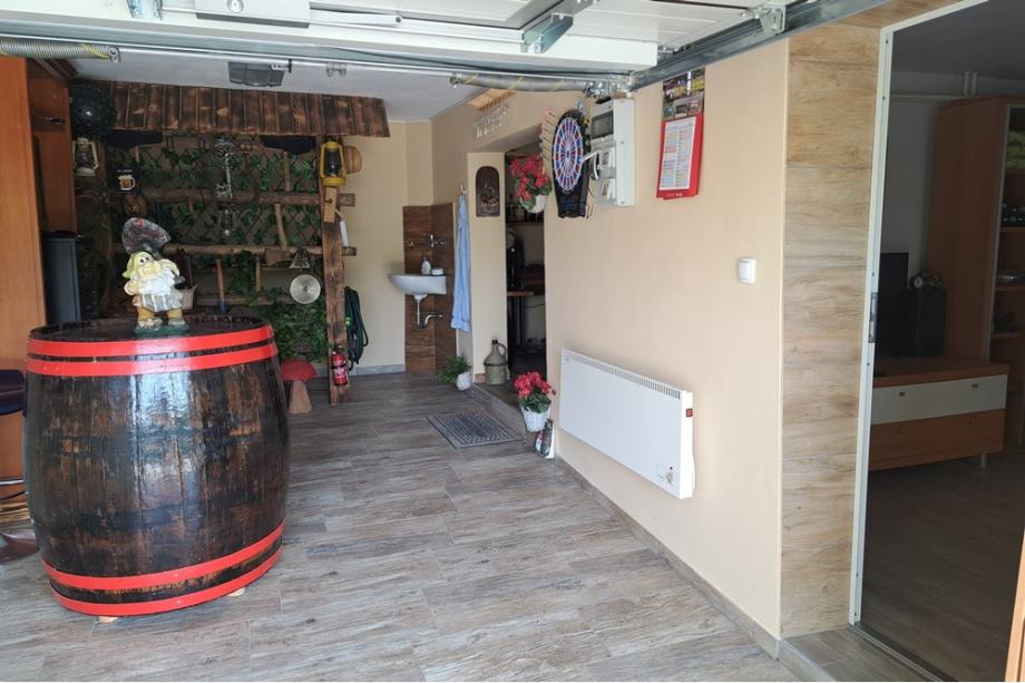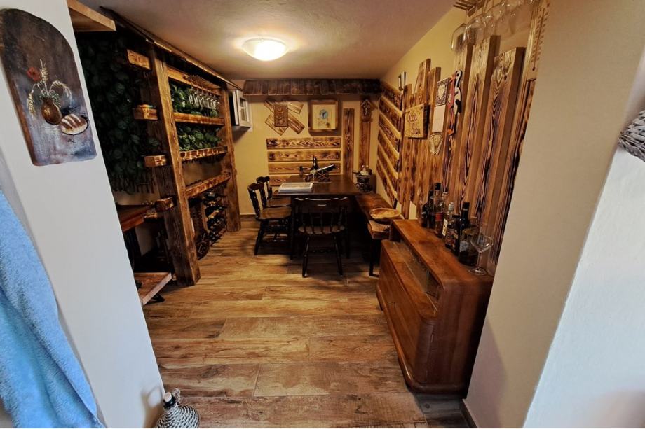 V kletni etaži se nahaja garaža oz. predprostor, soba in vinska soba za druženje, v prostorih pritličja se nahaja hodnik, kopalnica, kuhinja z jedilnico, spalnica in dnevna soba z izhodom na balkon, podstreha ni izdelana. Je pa možna uporaba prostora, ker je plošča betonska.