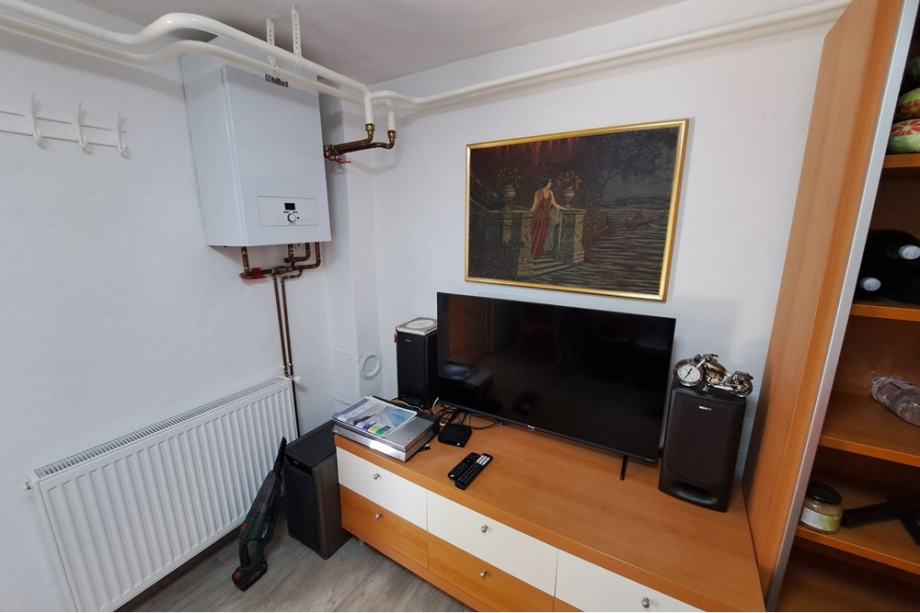Objekt se ogreva centralno z radiatorji in preko električne peči. Sanitarna voda se ogreva preko električnega bojlerja. Vgrajena je klimatska naprava (hlajenje/ogrevanje). Stavbno pohištvo je pvc izvedbe, dvoslojne zasteklitve, z vgrajenimi žaluzijami in komarniki. Vhodna vrata so lesena, masivna in protivlomna.