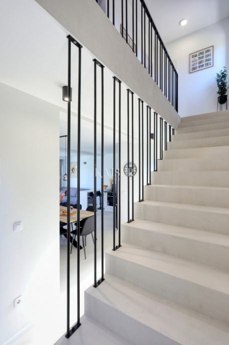 Poljica Brig, vila 137 m2 v mirnem okolju, 10 km od Zadra. Kaiser Immobilien predstavlja to moderno vilo, ki se nahaja v osrčju mirne vasi Poljica Brig, le nekaj kilometrov od zgodovinskega Zadra in nekaj minut od kraljevskega mesta Nin in čudovitih plaž. Mesto Nin je bilo v zgodovini nekoč znano kot kraljevsko mesto, v Ninu pa se nahaja tudi 8 km dolga peščena plaža in nahajališče z zdravilnim blatom. V bližini je veliko zanimivih objektov, kot so številni narodni in naravni parki ter čudoviti otoki v zadrskem akvatoriju. Najbližje urbano središče, mesto Zadar, je oddaljeno 10 km, najbližje letališče Zemunik pri Zadru pa 18 km. Zasnovana s poudarkom na eleganci in funkcionalnosti, ta nepremičnina predstavlja kombinacijo razkošja in praktičnosti ter ponuja idealen prostor za bivanje, počitnice ali vlaganje v turistične najemnine, saj že ima uveljavljeno turistično dejavnost. Hiša s skupno bivalno površino 137 m2 je bila zgrajena na parceli velikosti 501 m2. Sestavljena je iz pritličja in zgornjega nadstropja. V pritličju je prostorna dnevna soba, kuhinja, jedilnica, ena spalnica in kopalnica. V zgornjem nadstropju so tri spalnice in dve kopalnici, od katerih ima ena svojo kopalnico. Na prostornem dvorišču se nahaja ogrevan bazen, prostor za sončenje, otroško igrišče in poletna kuhinja ter zasebno parkirišče. Hiša je v celoti klimatizirana, kopalnice pa imajo talno ogrevanje. Nin – 7 km (10 min) Zadar – 10 km (15 min) Biograd na Moru – 50 km (40 min) Šibenik – 90 km (1 ura) Split – 150 km (1 ura 30 min) Zagreb – 280 km (2 uri 45 min) Narodni parki: NP Paklenica – 55 km (45 min) NP Kornati – dostop iz Zadra (izleti z ladjo) NP Krka – 85 km (1 ura) NP Plitviška jezera – 130 km (1 ura 45 min) Agencijska provizija za kupca znaša 3 % + DDV in se plača v primeru nakupa nepremičnine, ob sklenitvi prvega pravnega dejanja. Ne zamudite priložnosti, da postanete lastnik tega čudovitega doma, ki ponuja popolno kombinacijo modernega dizajna, luksuza in udobja. Za več informacij in za dogovor o ogledu nas kontaktirajte z zaupanjem. Tel: +38599 E-pošta: vedran@kaiser-immobilien.hr