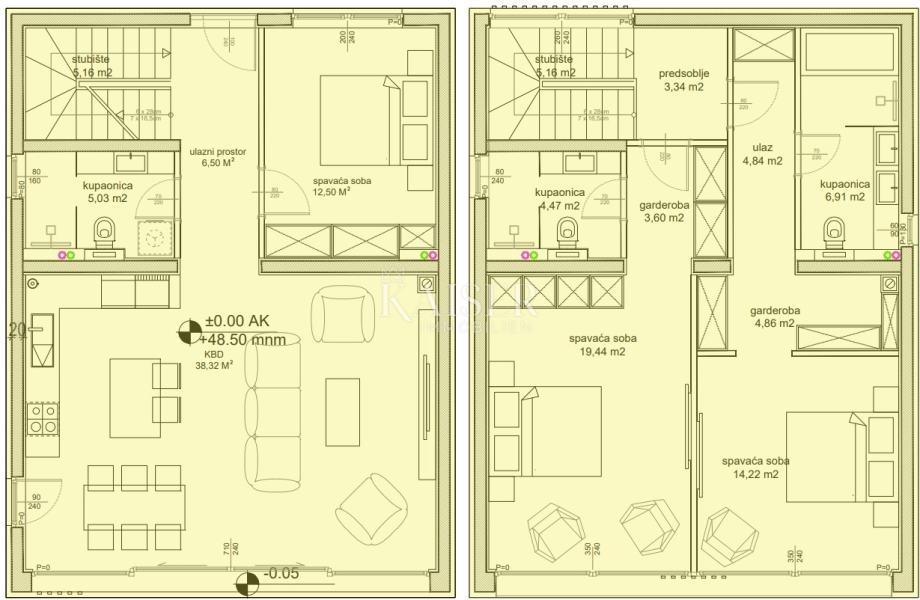 Kaiser Immobilien predstavlja: Luksuzna dvonadstropna vrstna vila z bazenom in pogledom na morje Predstavljamo vam luksuzno dvonadstropno vrstno vilo s prostornim vrtom, bazenom in čudovitim razgledom na morje in otoke, ki združuje udobje z moderno arhitekturo. Skupna površina 171,89 m². Dodatne prednosti vile so odprt koncept dnevne sobe in kuhinje, prostorne spalnice z garderobami in lastnimi kopalnicami ter velika terasa in vrt. Vila, zgrajena iz visokokakovostnih materialov, ima zunanje stene iz armiranega betona (20 cm), dodatno izolirane z EPS izolacijo (5-10 cm) in zaključne s fasadnim ometom. Napreden sistem toplotne in zvočne izolacije zagotavlja maksimalno udobje v vsaki sobi. Strankam je na voljo možnost naročila in izdelave pohištva po meri, prilagojenega osebnim željam in potrebam. Vsaka vila je ločena z visokimi obodnimi zidovi, ki ščitijo zasebnost in zagotavljajo varnost. Glavni obzidni zid z višino 1,80 m se razteza vzdolž celotne parcele, medtem ko ima drugi zid, ki se nahaja nad glavnim obzidjem in deli prostor med vilo in dvoriščem, prav tako višino 1,80 m. Vila je sestavljena iz: Pritličje - Vhodna površina: 6,50 m² - Dnevna soba + jedilnica + kuhinja: 38,32 m² - Stopnišče: 5,16 m² - Spalnica: 12,50 m² - Kopalnica: 5,03 m² Prvo nadstropje - Hodnik: 3,34 m² - Garderoba: 3,60 m² - Kopalnica: 4,47 m² - Spalnica: 19,44 m² - Vhod: 4,84 m² - Kopalnica: 6,91 m² - Garderoba: 4,86 m² - Spalnica: 14,22 m² Zunanje površine - Nepokrita terasa: 47,23 m² - Vrt: 70,79 m² - Bazen: 24 m2 - Parkirno mesto: 20,12 m² Vila se nahaja v mirni in slikoviti dalmatinski vasici Sv. Filip i Jakov, v neposredni bližini Biograda na Moru in le 25 km od Zadra. Ta lokacija ponuja ravnovesje med zasebnostjo in bližino vseh potrebnih ugodnosti. Daleč od mestnega vrveža, a hkrati blizu morja in središča mesta, je vila idealna za sproščeno življenje ali donosno turistično naložbo. Sv. Filip i Jakov, ki se nahaja na jadranski obali, je kraj, znan po čudovitih plažah, kristalno čistem morju in razvejani obali v neposredni bližini narodnega parka Kornati. Nahaja se 4 km od mesta Biograd na Moru in le 25 km od mesta Zadar. Razdalje: Avtocesta A1 (izvoz Benkovac) – 20 km Letališče Zadar – 25 km Nacionalni parki: - Kornati (izleti z ladjo iz mesta) - Krka – 50 km - Paklenica – 60 km - Vransko jezero (naravni park) – 10 km Split – 144 km Zadar – 25 km Ne zamudite priložnosti, da postanete lastnik te luksuzne hiše! Provizija kupca znaša 3 % + DDV in se zaračuna ob prvem pravnem dejanju. Za več informacij nas kontaktirajte z zaupanjem: Tel.: 00385992510230 E-pošta: marijana.papic@kaiser-immobilien.hr