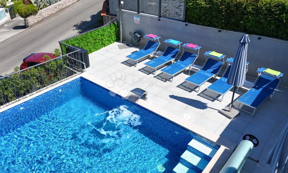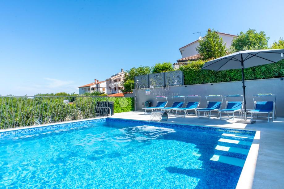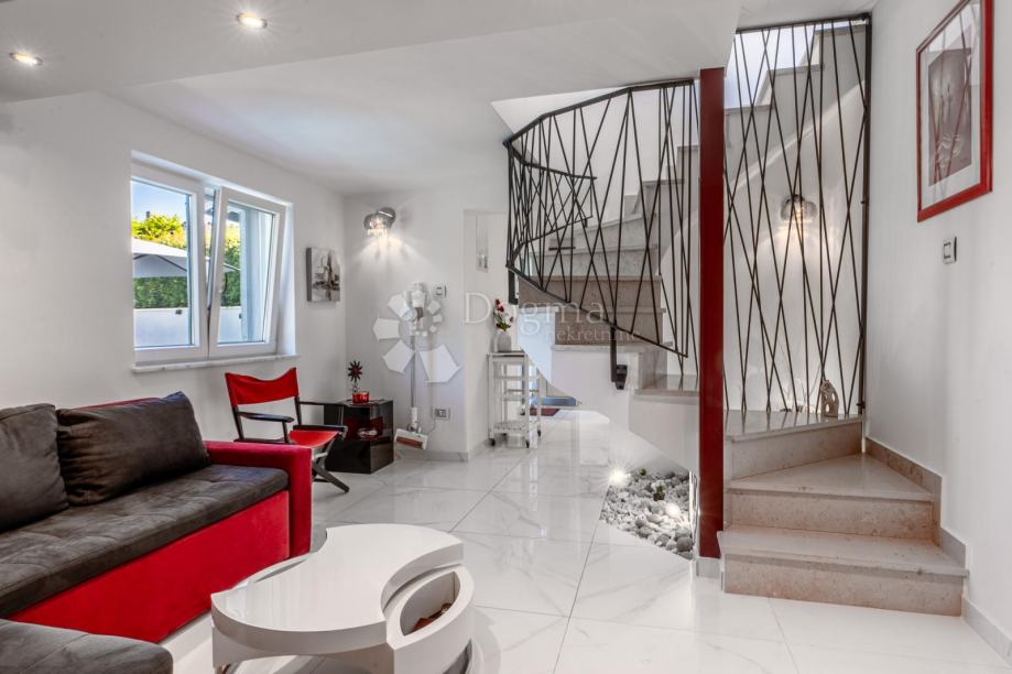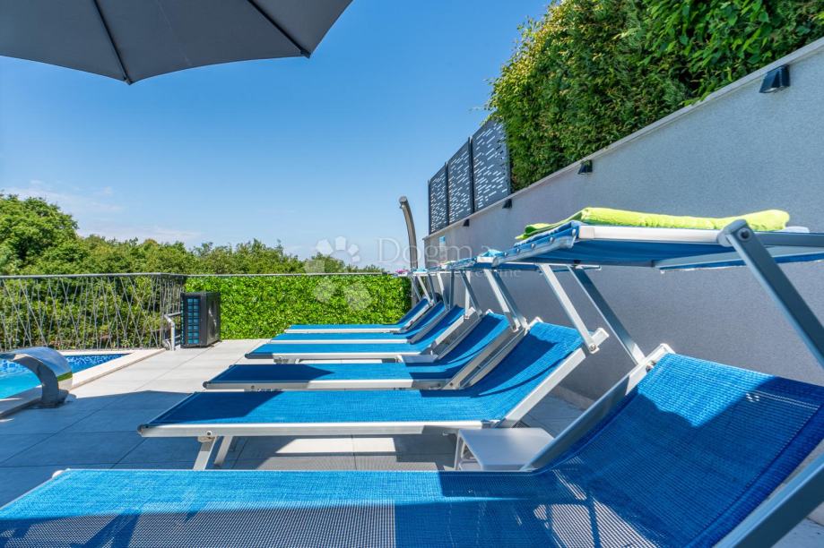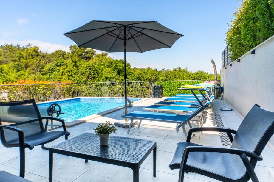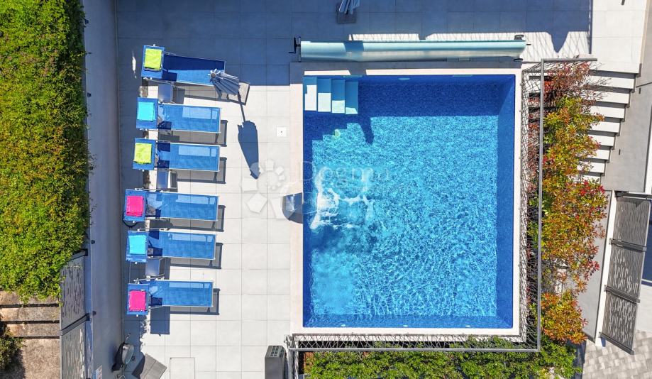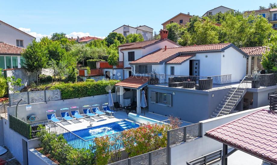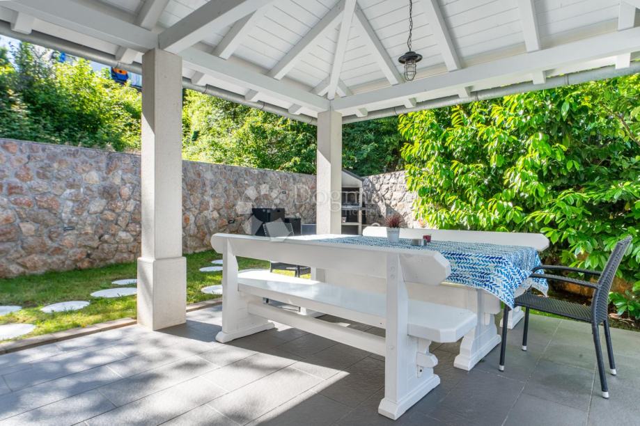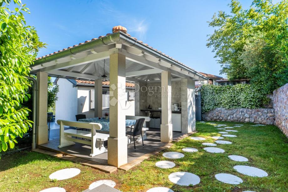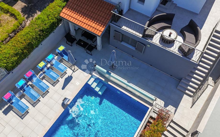 Ta čudovita vila se nahaja na otoku Krku, le nekaj minut hoje od morja, in je idealen kraj za sprostitev in uživanje v sredozemskem podnebju. Vila ponuja štiri prostorne spalnice, idealne za družino ali večje skupine, in udoben prostor za tiste, ki iščejo razkošje in zasebnost. V središču vile je ogrevan bazen, ki je idealen za uživanje skozi vse leto, ne glede na letni čas. Terase ponujajo čudovit razgled na morje, zaradi česar je vsak trenutek nepozaben. Vila ima očarljivo paviljon z žarom, idealen za uživanje v obrokih na prostem in druženjih z družino in prijatelji. Vila se nahaja na mirni lokaciji in ponuja popolno ravnovesje med bližino morja in zasebnostjo, zaradi česar je odlična izbira za počitnice ali naložbo v najem.