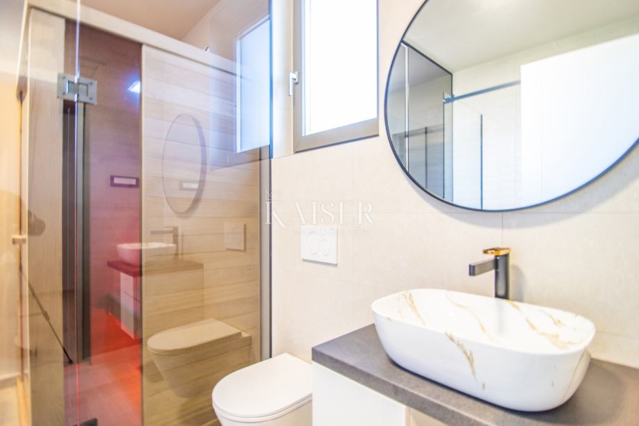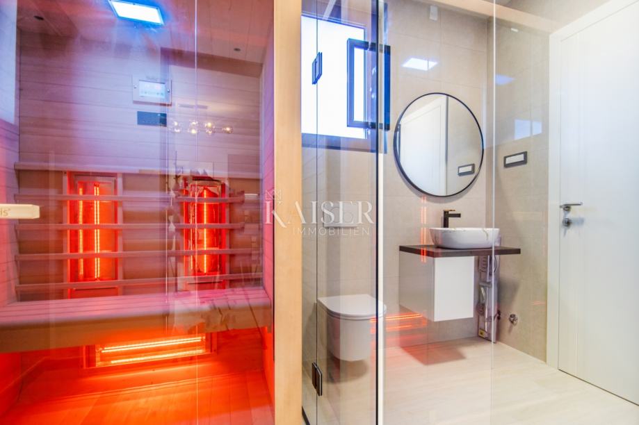 Kaiser immobilien posreduje pri prodaji moderne vile z bazenom na jugozahodnem delu otoka Krk, Brzac. Objekt ima skupno površino 212,99 m2 in se razteza v dveh etažah. V pritličju ob vhodnem delu se nahaja odprt bivalni prostor 38m2, spalnica za goste z lastno kopalnico, dve shrambi, savna in WC. Dnevna soba vodi na prostorno pokrito teraso 30 m2. V prvem nadstropju, do katerega vodijo notranje stopnice, so še tri spalnice z izhodi na pokrito teraso in panoramskim pogledom na morje in otok Cres. Glavna spalnica ima garderobno omaro in zasebno kopalnico, v nadstropju pa je še dodatna kopalnica. Gradnja in oprema je bila izvedena z uporabo visokokakovostnih materialov in opreme, med drugim Porotherm zidaki v kombinaciji s fasadnim sistemom STO, električno talno ogrevanje po celotni površini - regulacija preko wi-fi, klimatske naprave LG v vsakem prostoru in dnevna soba, LED svetila, vrhunska španska keramika Cifre, panoramske dvižne in drsne stene PVC, priprava za fotovoltaično elektrarno na strehi. Nepremičnina se prodaja v celoti opremljena in opremljena. Na urejenem vrtu je 21m2 velik bazen s prostorom za sončenje in prho, bazen pa je opremljen za ogrevanje vode s toplotno črpalko. V ceno je vključen tudi popolnoma dokončan vrt z vrtnarijo, namakanjem, tlakovci Semmelrock in daljinsko vodeno ograjo, pripadata pa tudi dve parkirni mesti s pripravo za polnjenje električnih vozil. Predviden zaključek gradnje je poleti 2024. Velika prednost te nepremičnine je njena lokacija. Ta vila, ki se nahaja na jugozahodnem delu otoka v mirnem in nežnem okolju, le 5 minut vožnje do čudovitih plaž, vas bo očarala s čarobnimi sončnimi zahodi v Sredozemlju in mirom bližnjih oljčnih nasadov. Provizija agencije za kupca znaša 3% + DDV in se plača v primeru nakupa nepremičnine ob sklenitvi prvega pravnega posla. ID KODA 105-208