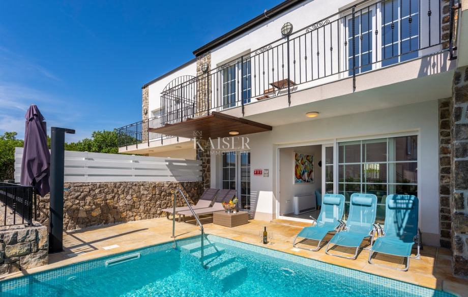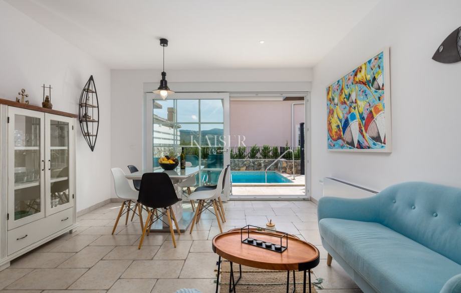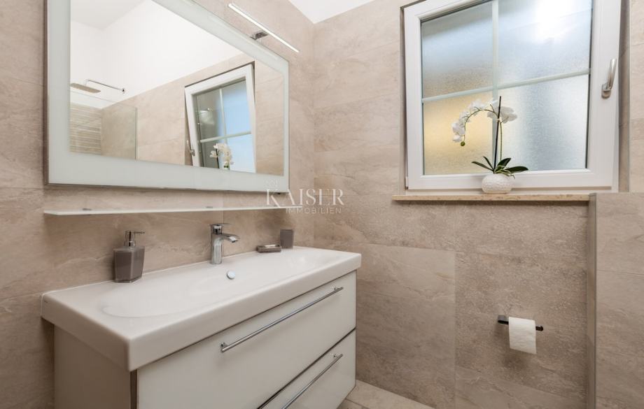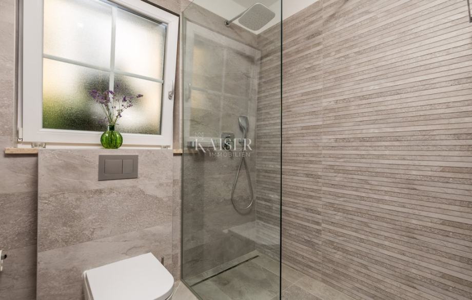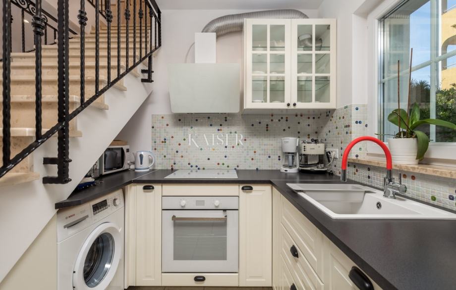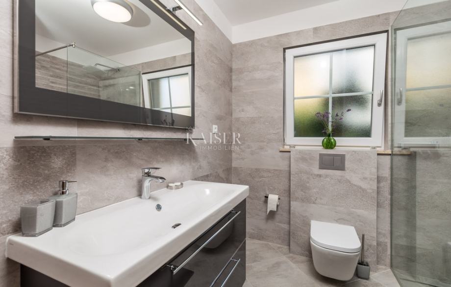 Kornić je majhno mesto na otoku Krku, prva pisna omemba mesta Kornić sega v leto 1503. Kornić ima približno 350 stalnih prebivalcev in se nahaja približno 6 km od mesta Krk in 3 km od Punta. Kornić ima čudovit razgled na Puntarsko Valo in otoček Košljun s frančiškanskim samostanom. To mesto ponuja počitek in mir, idilično naravo in lepo urejene plaže z veliko vsebine in je idealno izhodišče za odkrivanje otoka, saj so vsa večja mesta na otoku res dosegljiva iz Kornića. Kaiser Immobilien vam predstavlja čudovito dvonadstropno vrstno vilo s skupno bivalno površino 110,23 m². Ta prostoren dom ima dobro organiziran prostor v dveh nadstropjih. V pritličju s površino 54,09 m² se nahajajo vhodni prostor, moderna kuhinja, jedilnica, prostorna dnevna soba, podstopnišče, hodnik, kopalnica in ena spalnica. V pritličju je tudi pokrita terasa velikosti 5,05 m², ki predstavlja idealen prostor za sprostitev na prostem. V prvem nadstropju, ki obsega 54,53 m², sta dve spalnici in dve dodatni kopalnici, garderoba in hodnik. V nadstropju je tudi balkon velikosti 2,70 m² s pogledom na zelenje, morje in marino. Poleg tega ima hiša 9,99 m² veliko teraso zunaj objekta z žarom, ki je kot nalašč za druženje in uživanje na prostem, ter 18,85 m² velik zunanji tuš in bazen za osvežitev v vročih poletnih dneh, ki se lahko uporablja tudi v zimskih mesecih. ker ima ogrevanje bazena. Nepremičnini pripadata tudi dve parkirni mesti, vsako v izmeri 12,50 m² in dodatna shramba. Hiša je opremljena s talnim gretjem in toplotno črpalko, ki zagotavlja optimalno energetsko učinkovitost in prijetno temperaturo skozi vse leto. Ta dom ponuja idealno kombinacijo funkcionalnosti, udobja in estetike, zaradi česar je odlična izbira za udobno družinsko življenje. Dodatna prednost je, da vse novo pohištvo ostane v nepremičnini, kar vam daje možnost, da se vselite in takoj uživate v svojem novem domu. Oddaljenost od objektov: Restavracija: 750m Trgovina: 600m Pekarna: 250m Plaža: 600m Marina Punat: 1,8 km Letališče: 28 km Krk: 6 km Punat: 3km Oddaljenost od večjih mest: Kornić- Ljubljana: 150 km Kornić- Budimpešta: 500 km Kornić - München: 550 km Kornić- Dunaj: 520 km Kornić- Praga: 850 km Agencijska provizija za kupca znaša 3% + DDV in se plača v primeru nakupa nepremičnine, ob sklenitvi prvega pravnega posla. ID-KODA: 127-016 Če si želite nepremičnino ogledati osebno, kontaktirajte: Jennifer Hofmann E-pošta: jennifer@kaiser-immobilien.hr Telefon: +385-91-515-0887 http://kaiser-immobilien .hr/