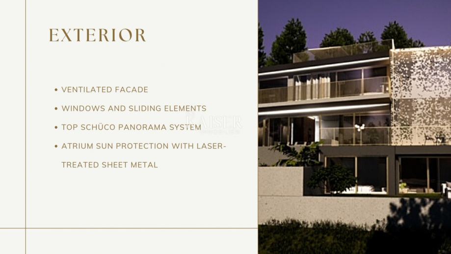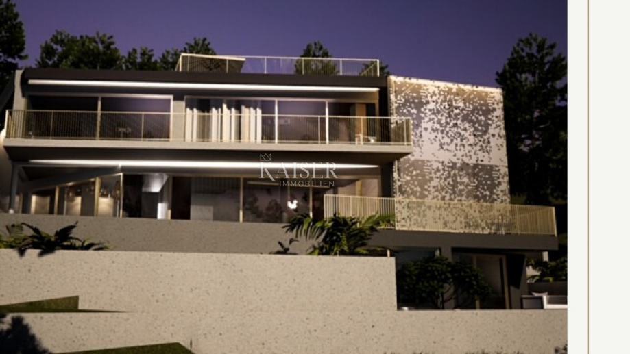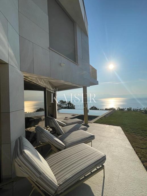 Kaiser immobilien vam predstavlja luksuzno vilo s čudovitim pogledom na morje. Vila je od najlepših plaž v Mošćenički Dragi oddaljena le 5 minut vožnje. Vila ima šest spalnic s šestimi zasebnimi kopalnicami. Vila nudi lastnikom popolno zasebnost in mir.OPATIJA - IČIĆI - POLJANE, Na prodaj je čudovita moderna vila z neskončnim bazenom in panoramskim pogledom na morje, na lepi in mirni lokaciji ter le 5 minut vožnje oddaljena od morje in najlepše plaže v Mošćenički Dragi. Edinstvena nepremičnina v modernem stilu, ki svojim lastnikom zagotavlja popolno udobje! V pritličju se nahaja velika prostorna dnevna soba s kuhinjo in jedilnico z izhodom na teraso. Notranje stopnišče vodi v 1. nadstropje, kjer so tri sobe z lastnimi kopalnicami. Iz prvega nadstropja vodijo stopnice v drugo nadstropje, kjer so še 3 spalnice z lastnimi kopalnicami. Na urejenem vrtu je veliko kopališče z bazenom s čudovitim panoramskim pogledom na celoten Kvarnerski zaliv.