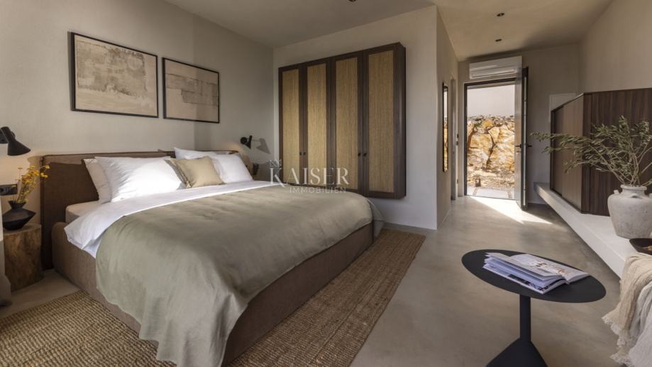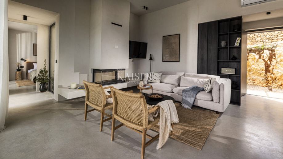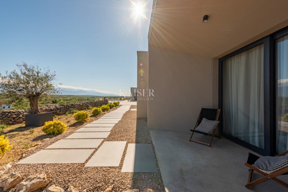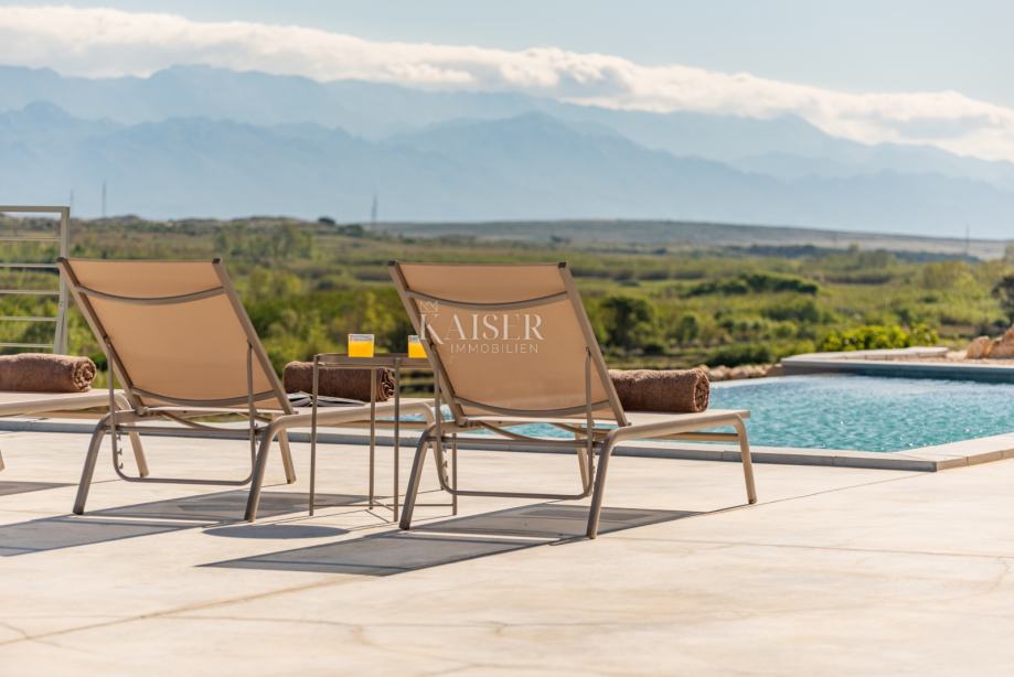 Kaiser Immobilien predstavlja čudovito pritlično vilo s prostorno dnevno sobo s kaminom, štirimi 25 m2 spalnicami, 40 m2 veliko dnevno sobo/sobo za zabavo in veliko teraso s 40 m2 ogrevanim neskončnim bazenom s pogledom na zaliv in gore. Vila se gradi na parceli 1490 m2 s pokritim parkiriščem, polnilnico za električni avto in vrtom, zasajenim z mediteranskimi rastlinami. Vila je opremljena s popolnoma opremljeno kuhinjo, kopalnico s kabino za prhanje in talnim gretjem ter klimatsko napravo v vseh sobah. Ima zunanji salon in teraso z žarom. Ima tudi fotovoltaično elektrarno, ki zagotavlja dodatno energijo za nepremičnino. Otok Pag je eden najbolj sončnih otokov na Jadranu z več kot 2500 sončnimi urami na leto. Med več kot tisoč jadranskimi otoki je Pag popolnoma drugačen od ostalih; pod kamnitim oklepom se skriva bogastvo, ki so ga skozi stoletja ustvarjale roke pridnih otočanov, ki so morali vedno trdo delati, da so nekaj ustvarili. Zato ga je vredno obiskati, odkriti njegove različne obraze in v njih uživati. Za dodatne informacije nas z zaupanjem kontaktirajte na telefonsko številko +385 914100031 ali na elektronski naslov: romana@kaiser-immobilien.hr.