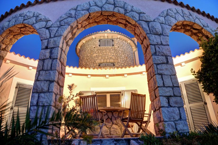 Na idiličnem otoku Silba (drugem najbolj gozdnatem hrvaškem otoku) brez avtomobilov, obkrožena z oljkami, figami, citrusi in granatnimi jabolki, palmami in bugenvilijami, se na hribu nahaja hazienda z elegantno vilo v mavrskem, dalmatinskem stilu. s čudovitim pogledom na največji peščeni zaliv na otoku in Velebit. Tukaj lahko najdete skrivališče, ki ga ne boste nikoli pozabili in kjer je vaša zasebnost ključnega pomena. Poletna hiša z nešteto terasami in zavetji, cca. 100 m oddaljena od peščenega in najlepšega zaliva na otoku, je kot nalašč za željne miru in ljubitelje sonca. Hiša - ki jo sestavljata vila (objekt A) in zgrajena klet za že odobreno bodočo drugo vilo (objekt B) - je arhitekturna mojstrovina. Objekt A ima 135 m2 in je sestavljen iz pritličja in prvega nadstropja. Pritličje sestoji iz stanovanja 70 m2 (čista bivalna površina) s kuhinjo/dnevno sobo, kopalnico, dvema spalnicama, 30 m2 pokrite terase, 120 m2 terase. , terasa 35 m2 s pogledom na morje. Prvo nadstropje je sestavljeno iz stolpnega stanovanja 30 m2 (čisti bivalni prostor) s kuhinjo/dnevno sobo, kopalnico, balkonom s pogledom na morje, spalnico (tretje nadstropje), ločenim vhodom, teraso 40 m2 s pogledom na morje vklj. vila ima še 120 m2 zgrajene kleti. Klet je tudi priprava za gradnjo objekta B. Potrjeni zazidalni načrt za objekt B meri cca. 220 m2 (na obstoječi grajeni kleti, ki je popolnoma vpeta v vrtno krajino). Bodoči lastniki te čudovite vile bodo uživali v edinstveni posesti, obdani z mediteranskimi rastlinami v neposredni bližini plaže. V tej Vili se boste lahko sprostili v popolni zasebnosti v popolnem miru od vsakdanjega vrveža.