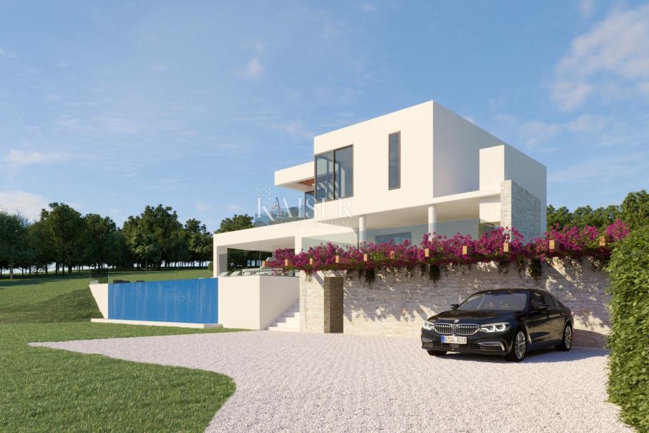Kaiser Immobilien ponuja vilo v gradnji na velikem zemljišču velikosti približno 10.000 m2. Vila je trenutno v gradnji in se prodaja v neopremljeni fazi. Imel bo dve etaži, v prvem nadstropju bodo tri spalnice s tremi kopalnicami, v pritličju bo velika kuhinja, dnevna soba in jedilnica ter ena delovna soba, ki se po potrebi lahko preuredi v dodatno spalnico. Vila bo imela neto površino 280 m2 in velik vrt, ki bo zagotavljal popolno zasebnost in mir. Vila se gradi v mirni vasici blizu Vižinade, le 15 km od Poreča. Poreč kot turistično mesto ponuja vse potrebne storitve, od trgovin in restavracij do banke, pošte in lekarne.