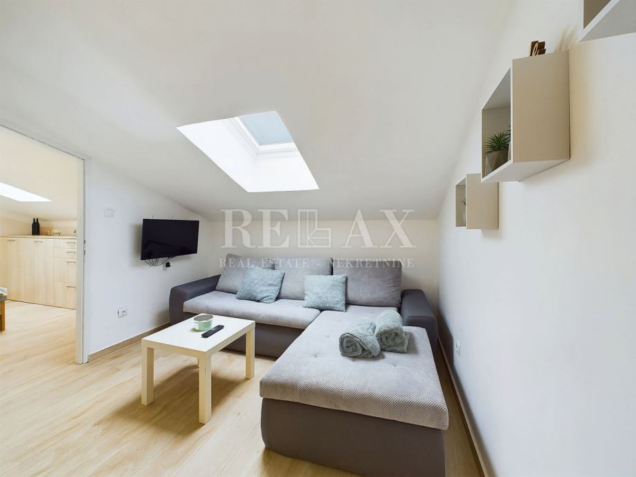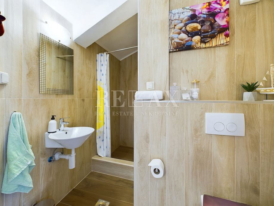 Prodaja se dvoetažno stanovanje v središču Novega Vinodolskega, oddaljeno le 200 metrov hoje od plaže in morja. To stanovanje s površino 65,23 m² je sestavljeno iz dveh etaž. V prvi etaži je svetla dnevna soba, povezana s kuhinjo in jedilnico, ter sodobno urejena kopalnica.