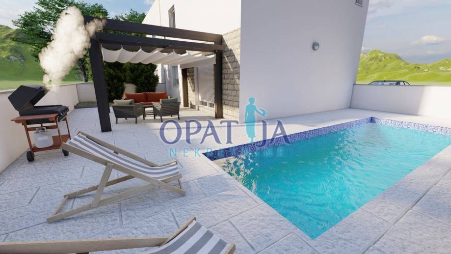 Vir – Moderna dvojna hiša z bazenom, strešno teraso in čudovitim razgledom na morje