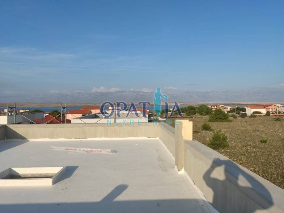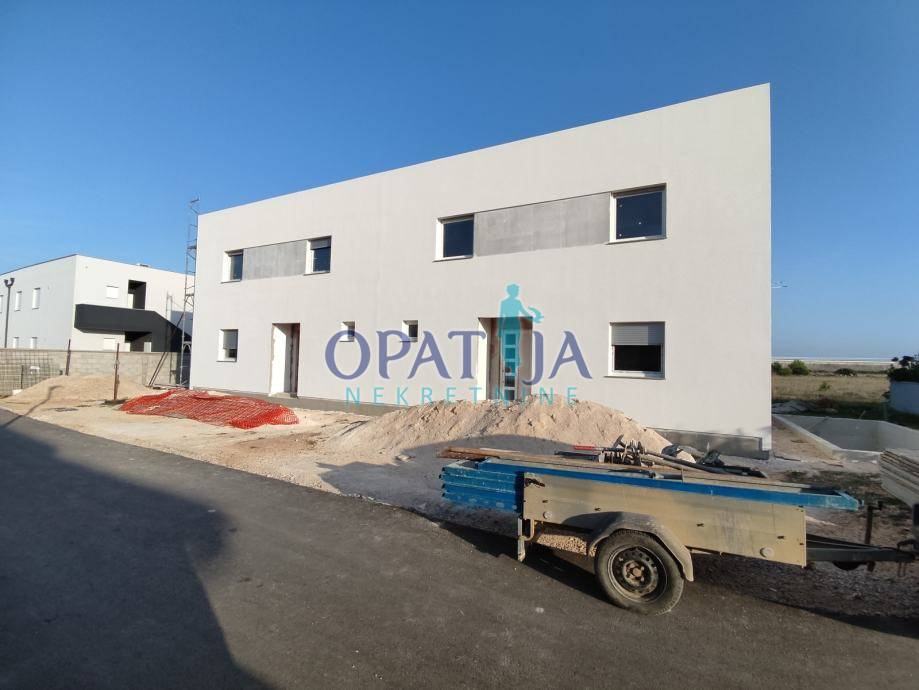 Ta dvojna hiša na priljubljenem otoku Vir združuje sodoben dizajn in vrhunsko bivalno udobje. Na zemljišču velikosti 271 m² se nahaja 108 m² bivalne površine, razporejene v dveh etažah ter prostorni strešni terasi. Zasebni bazen v urejenem vrtu vabi k sprostitvi, strešna terasa pa ponuja nepozaben razgled na turkizno Jadransko morje in impresivno gorovje Velebit.
