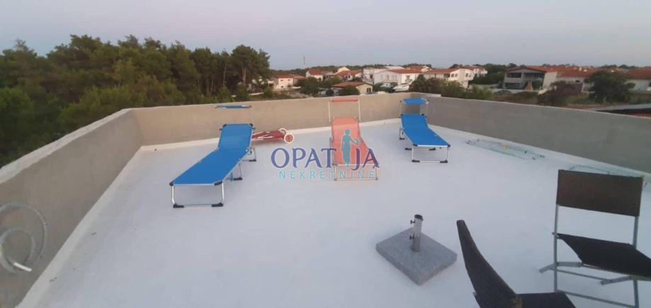 Posebnost te nepremičnine je prostorna strešna terasa s čudovitim pogledom na morje, idealna za uživanje v sončnih zahodih in toplih poletnih večerih.