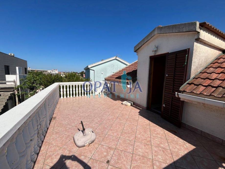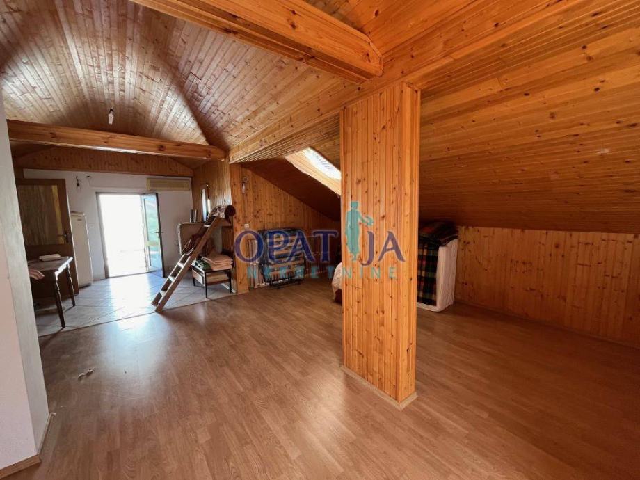 – Nadstropje (zunanji vhod): dodatna kuhinja, dnevni prostor, dve manjši spalnici, dve veliki terasi (21 m² in 24 m²)