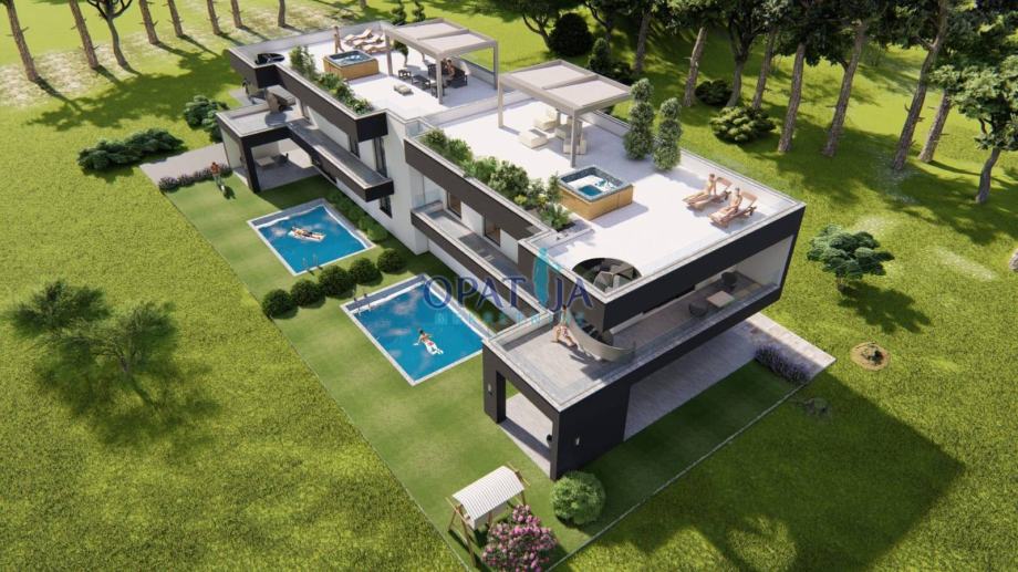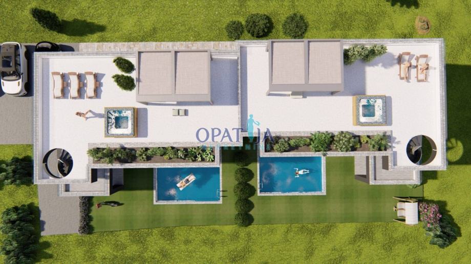 Vsaka vila ima 218 m² neto bivalne površine, razporejene na treh nivojih: pritličje, prvo nadstropje in ekskluzivno strešno teraso. Vsaka vila ima tri elegantne spalnice, tri sodobne kopalnice ter dodatno gostinsko WC. Odprti bivalni prostor s kuhinjo in jedilnico se harmonično povezuje z veliko pokrito teraso, ki nudi pogled na zasebni bazen – idealno za sprostitev s družino in prijatelji.